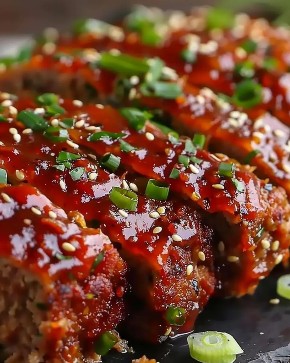 A savory and unique meatloaf recipe inspired by Korean flavors, featuring turkey bacon and chicken ham for a delicious twist.