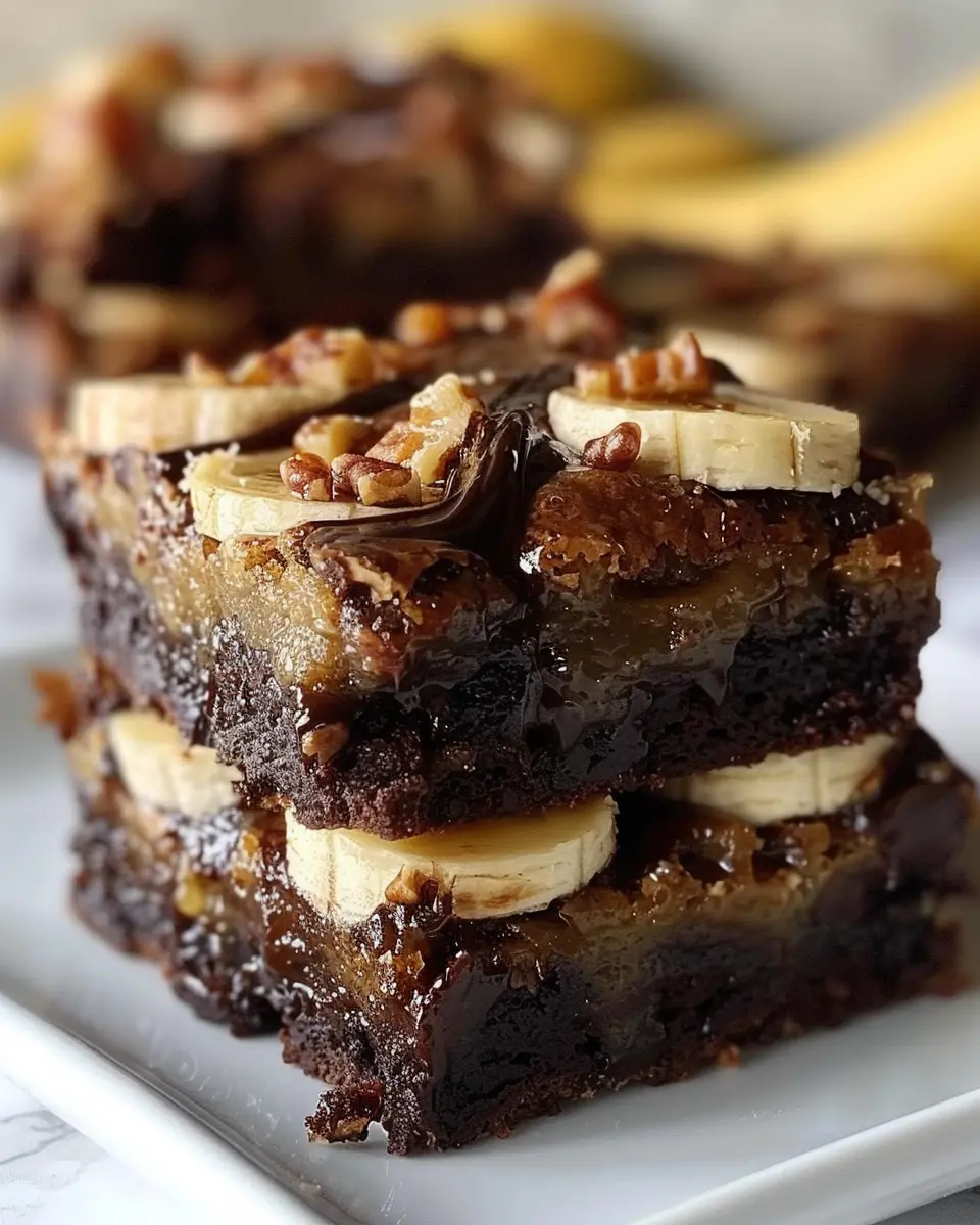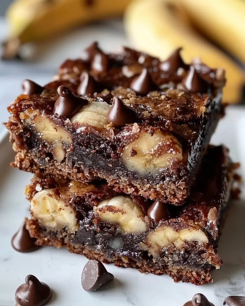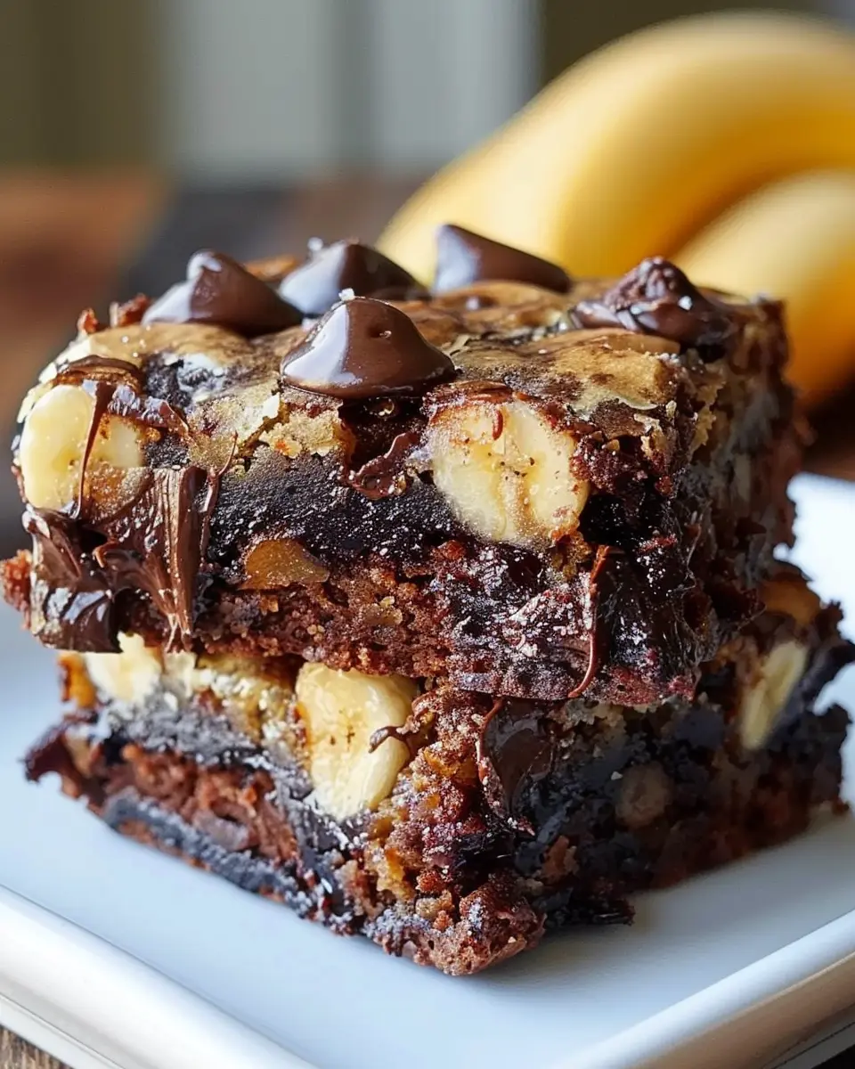 Deliciously moist banana bread brownies, combining the best of both desserts!