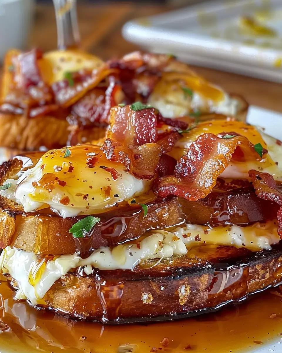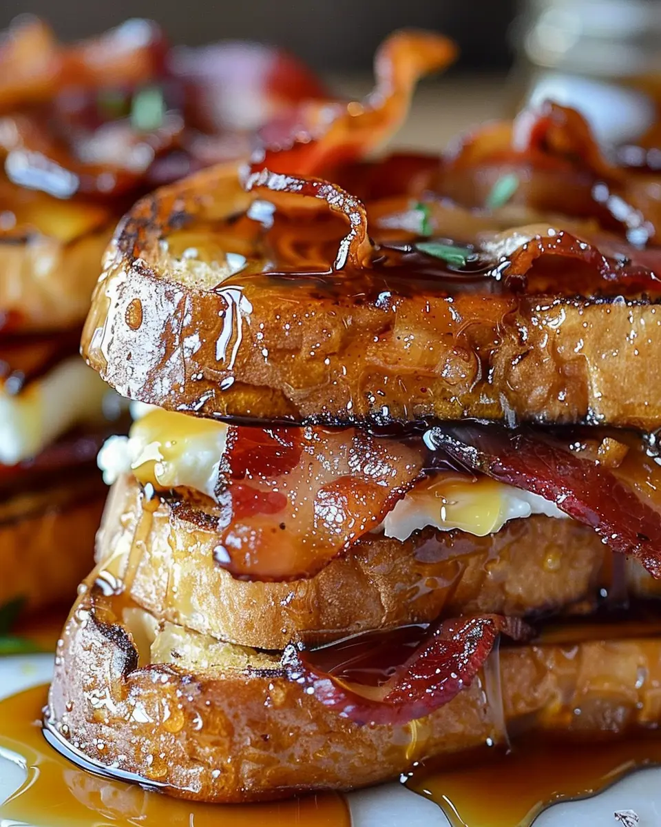 A delectable recipe for Bourbon Maple Turkey Bacon Stuffed Toast that combines sweet and savory flavors.