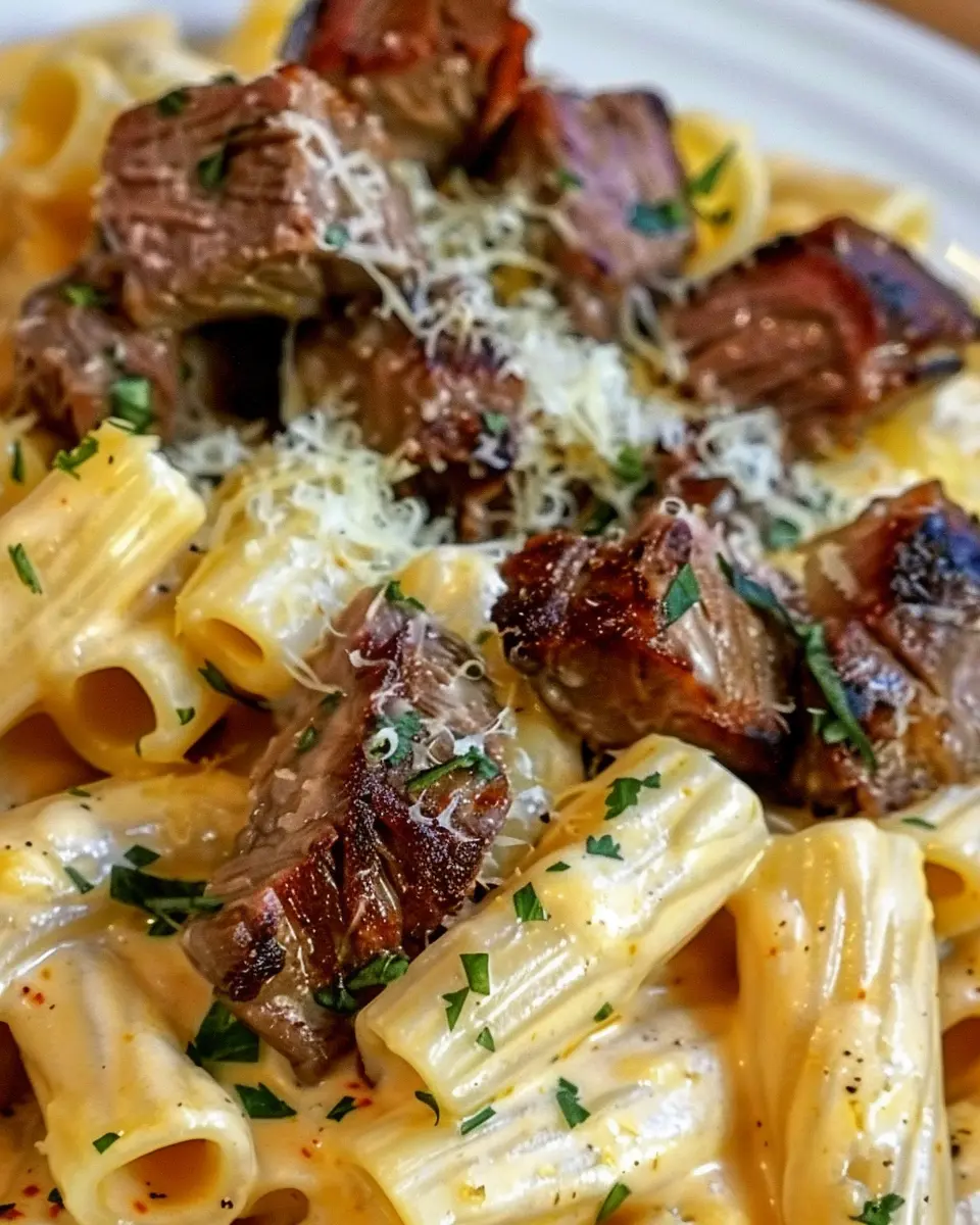 And let’s talk about the creamy rigatoni parmesan sauce. Made with rich cheese and just the right amount of creaminess, it envelops the pasta like a warm hug. The flavors meld beautifully with the steak tips, creating a delightful harmony that’s sure to draw everyone to the dinner table. This recipe not only delivers a tasty meal but also simplifies your cooking experience. With minimal prep time and straightforward steps, you can whip it up on a busy weeknight or serve it at a gathering without a sweat.