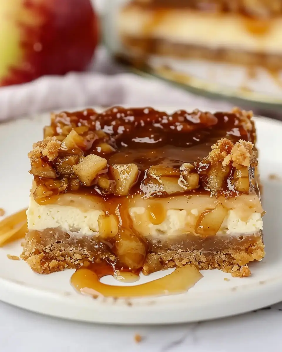 Keywords: Caramel Apple Cheesecake Bars, fall dessert, indulgent dessert