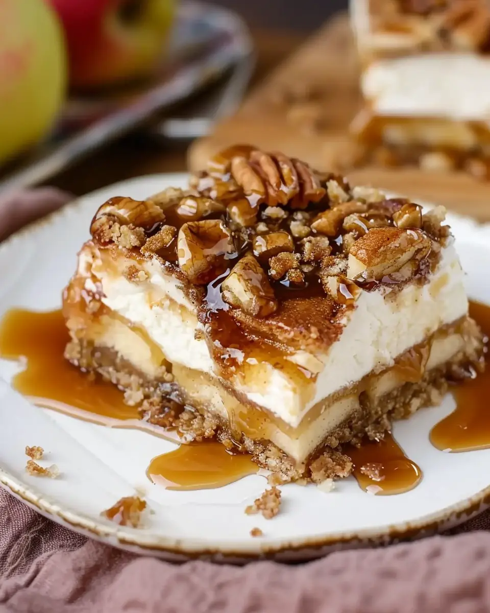 Flavor Harmony: The pairing of tart apples and sweet caramel is irresistible. When baked, the apples soften and meld beautifully with the creamy cheesecake layer, creating a dessert that’s both sweet and slightly tangy.