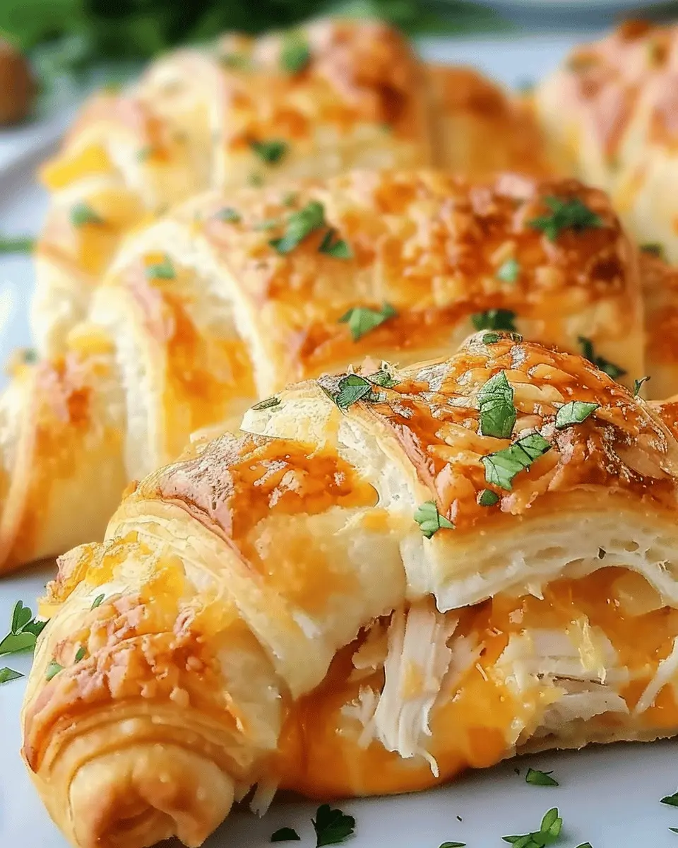 Delight in these Cheesy Chicken Crescent Rolls, perfect for home cooks seeking a quick and satisfying meal.
