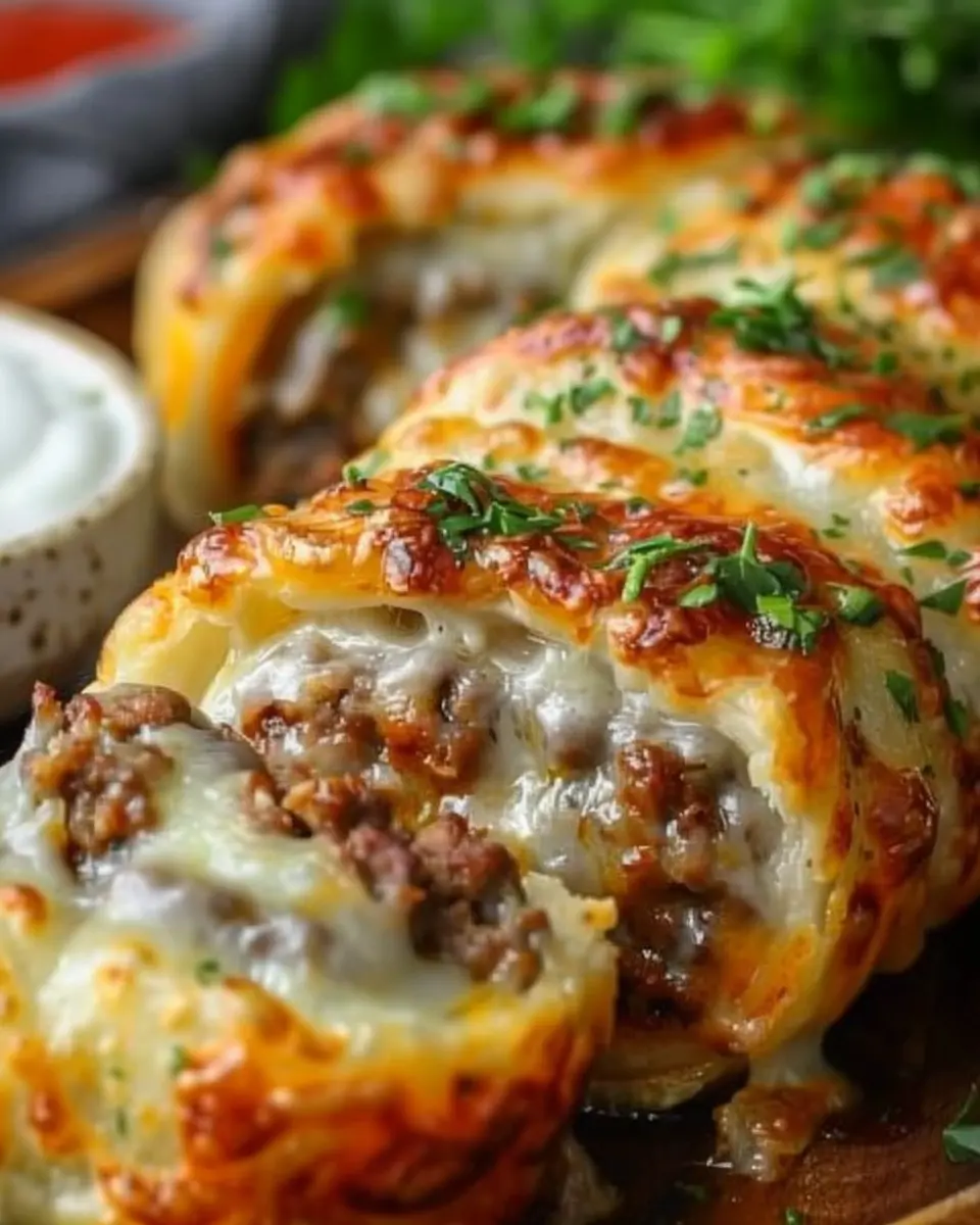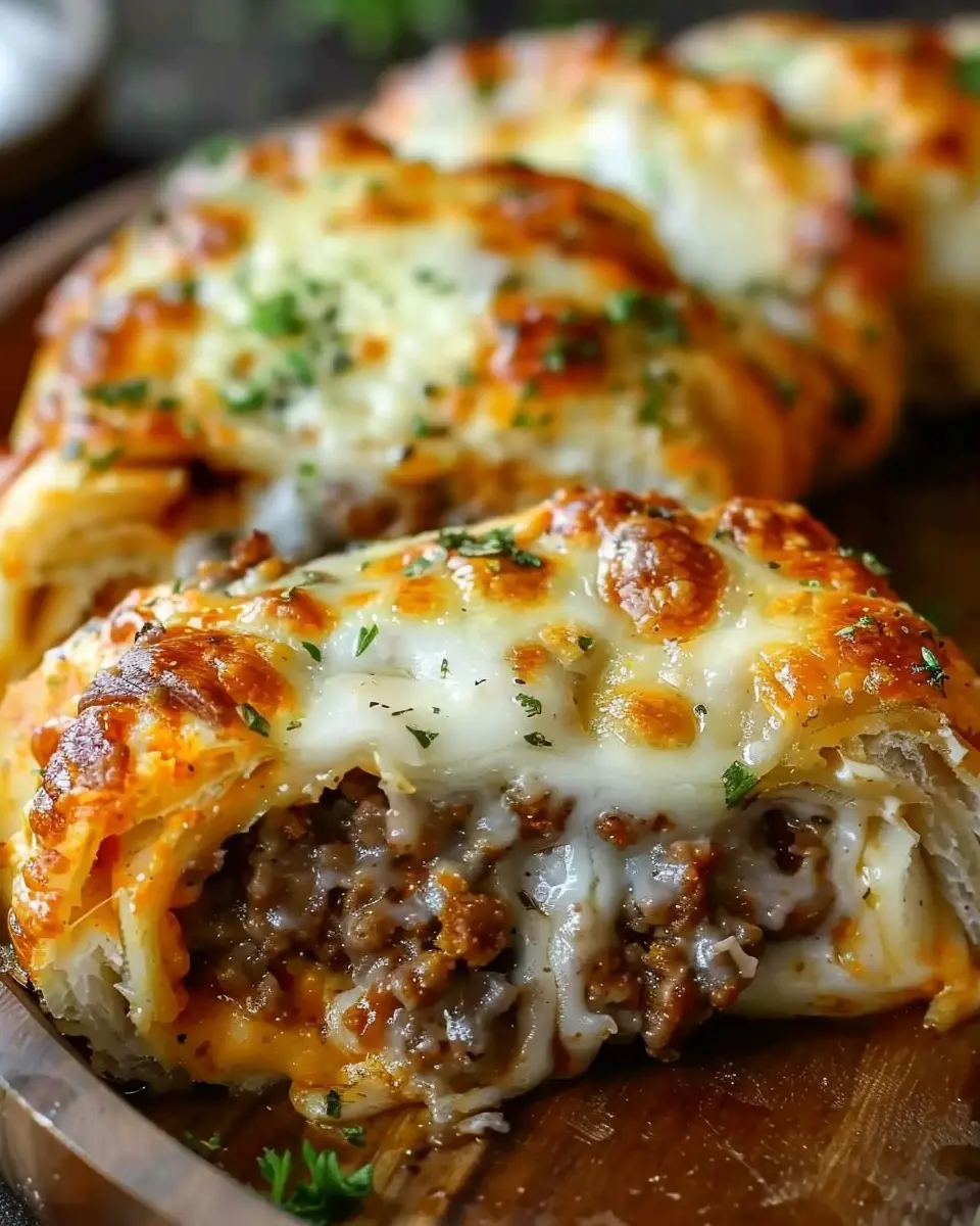 This cheesy ground beef roll is the perfect indulgent comfort food that is easy to make. Enjoy this delightful dish with your family or friends!