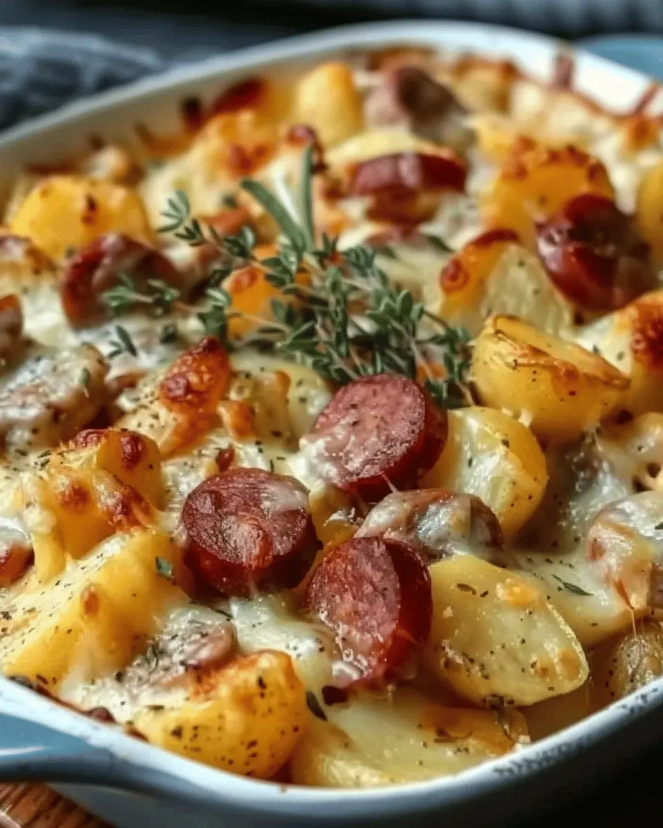 A delicious and easy recipe for cheesy ranch potatoes paired with smoked sausage, perfect for family dinners.
