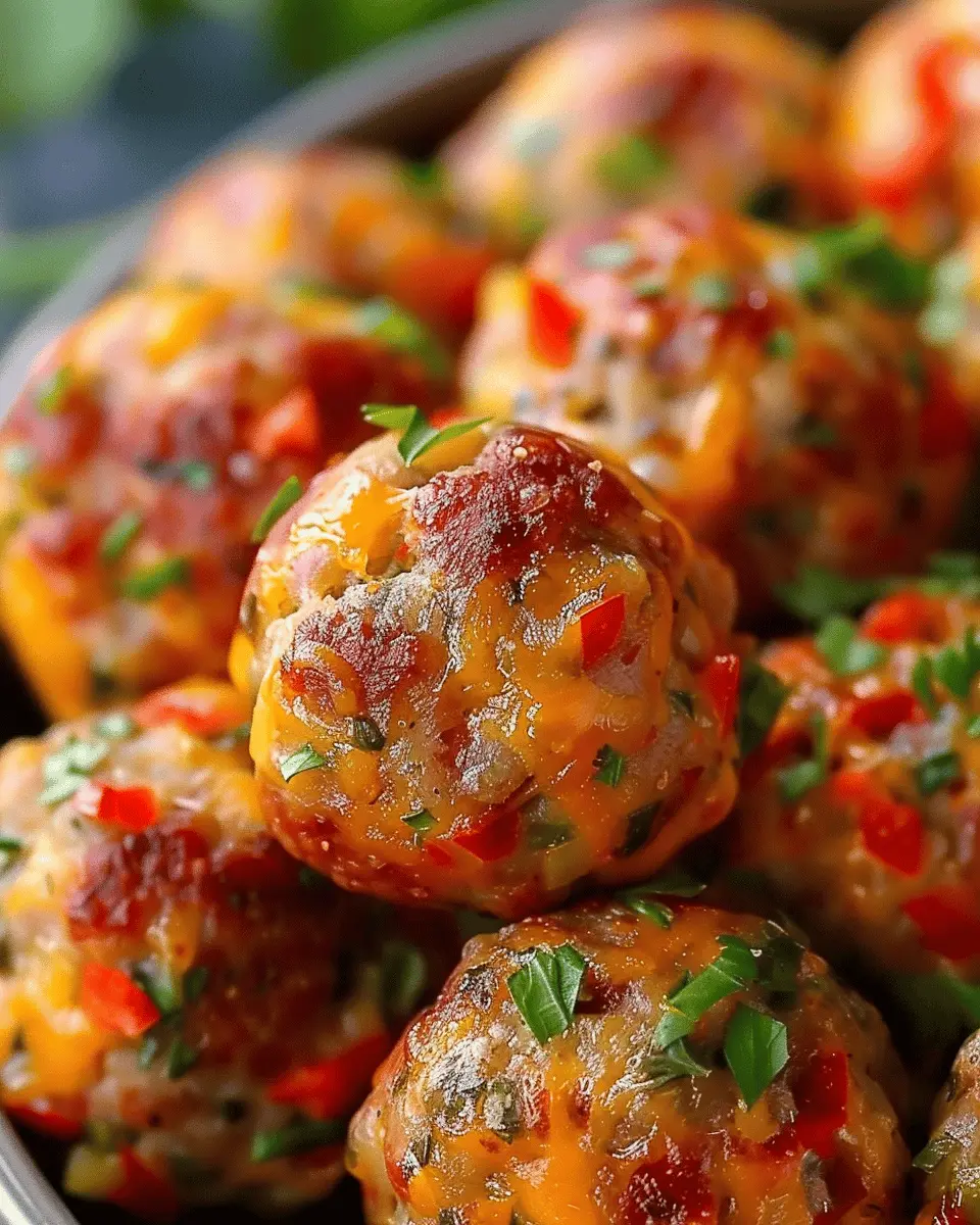 If you crave a kick, add some finely diced jalapeños to your Cheesy Rotel Sausage Balls! Not only do they provide heat, but they also infuse an earthy flavor. Pair them with Pepper Jack cheese instead of sharp Cheddar for extra zest. For an even spicier punch, try using pickled jalapeños or serve with spicy dipping sauces made from sriracha or chipotle mayo.