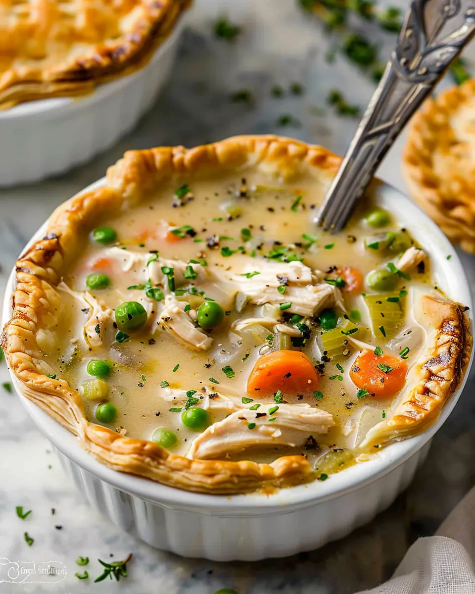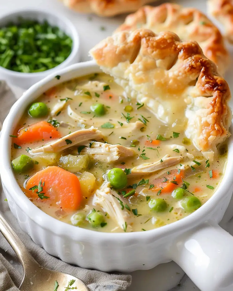 This Chicken Pot Pie Soup recipe combines the delightful flavors of traditional chicken pot pie with the comforting warmth of soup, featuring turkey bacon for a delicious twist.
