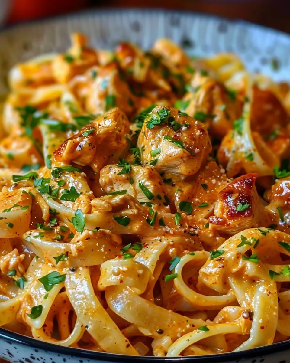- Dish it up: Spoon generous portions onto plates or bowls. The creamy, buttery sauce should generously coat each piece of pasta and chicken.