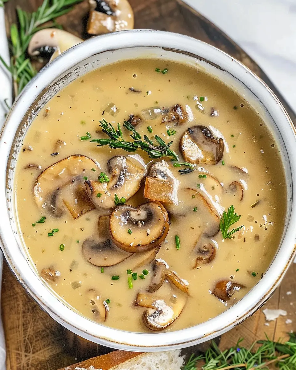 A delicious and creamy cream of mushroom soup that’s perfect for warm comfort.