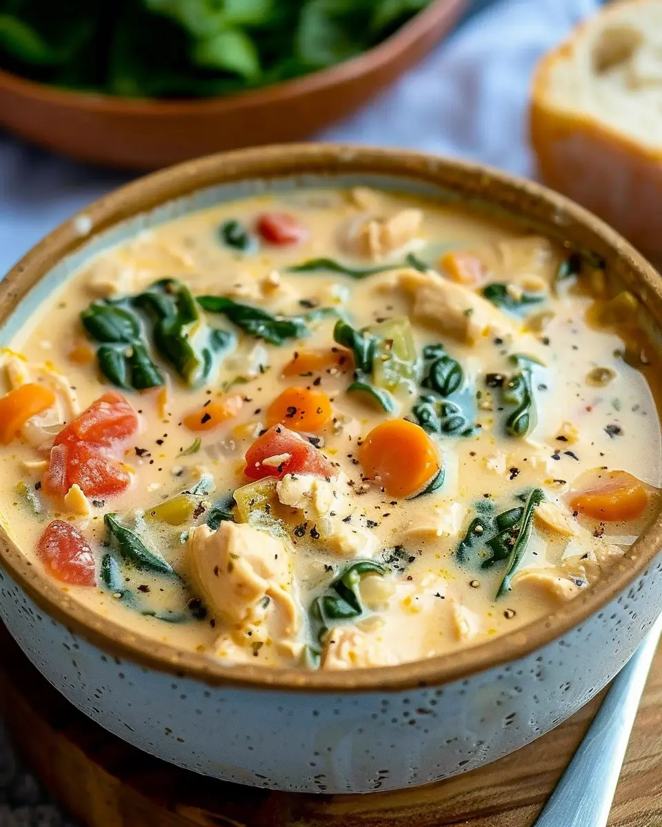 Let’s dive in. First off, the combination of tender chicken, vibrant vegetables, and rich cream creates a comforting texture that warms you from the inside out. The Tuscan flavors—with hints of sun-dried tomatoes, herbs, and a zing of garlic—bring a delightful twist to traditional soup recipes. The bright, savory notes paired with the creamy base make every spoonful an experience worth savoring.