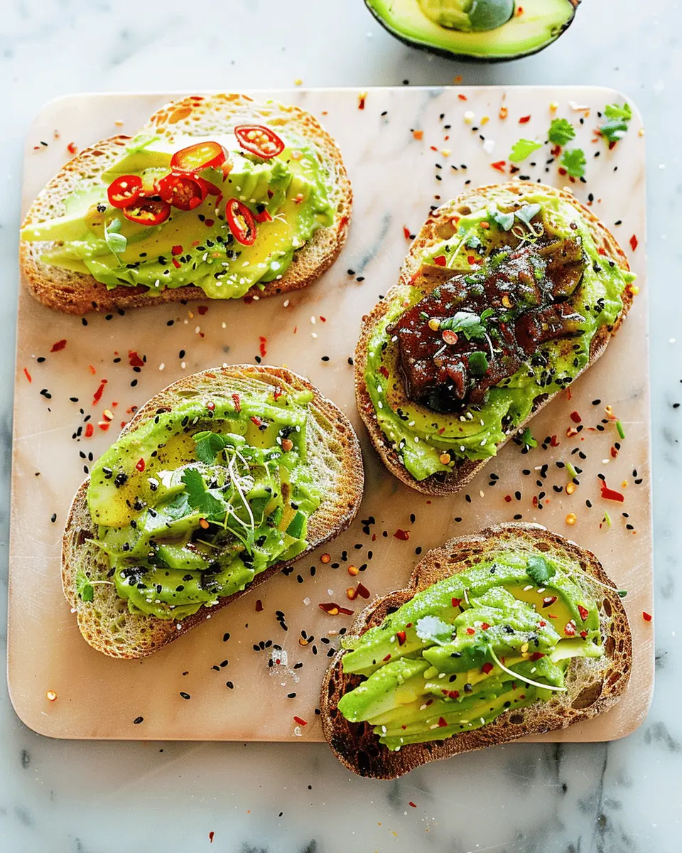 The beauty of avocado toast lies in its versatility when it comes to toppings! Here are some delicious options: