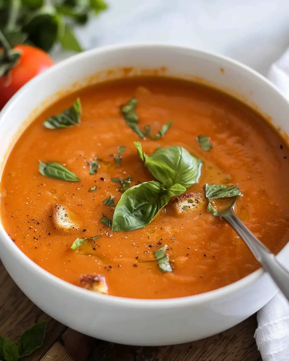 Keywords: Creamy Tomato Basil Soup, Comfort Food, Easy Soup Recipe