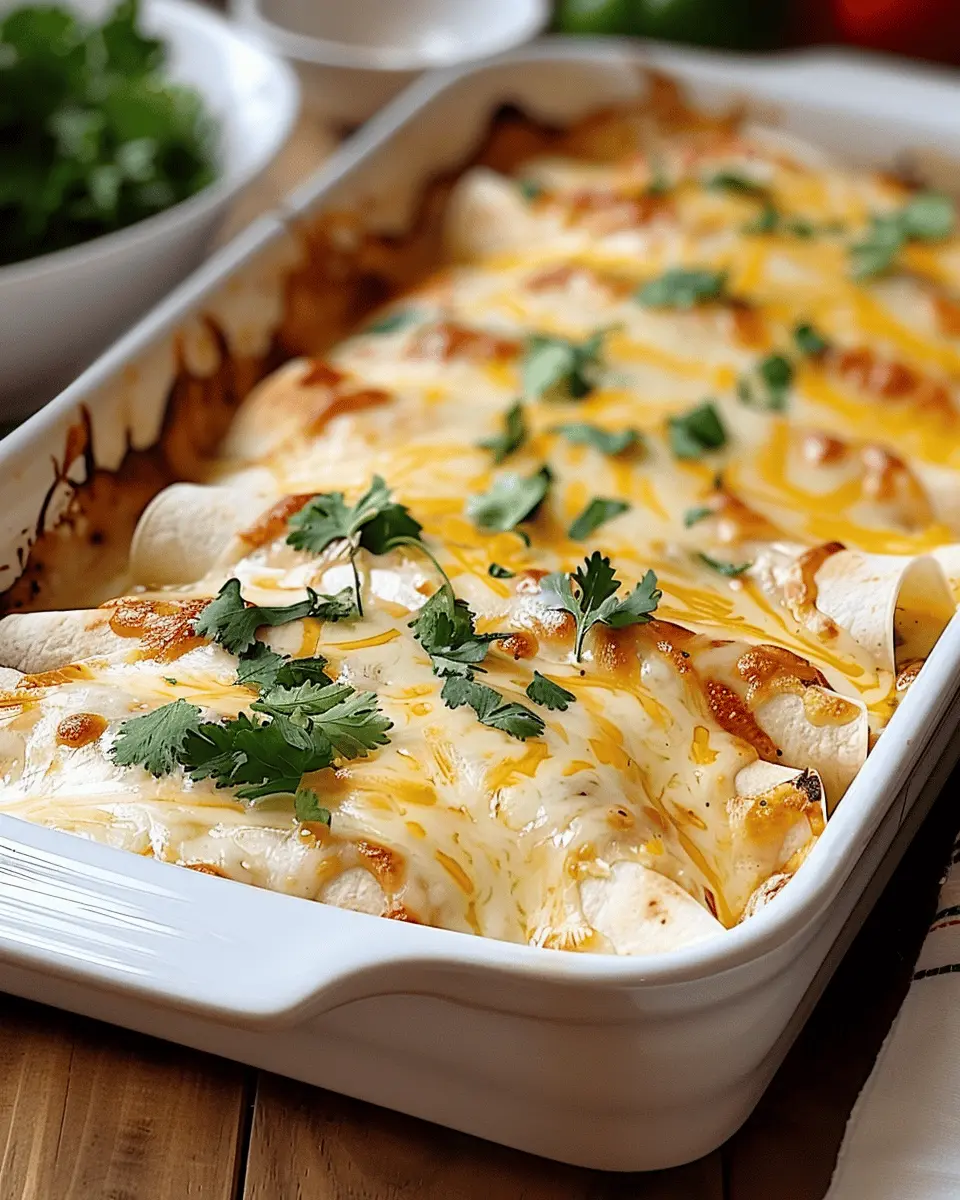 • Crowd-Pleaser: If you’re thinking of hosting friends for game night or simply wanting to share a meal with family, creamy white chicken enchiladas are bound to impress. The richness of the dish paired with the vibrant flavors will have everyone coming back for seconds (or thirds!).