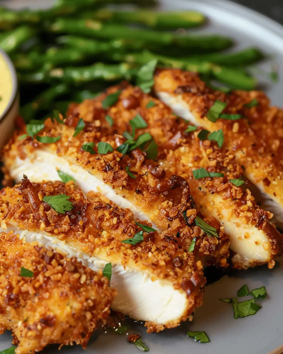 This Crispy Pretzel Crusted Chicken recipe is perfect for a family dinner, featuring a crunchy pretzel coating that adds flavor and texture.