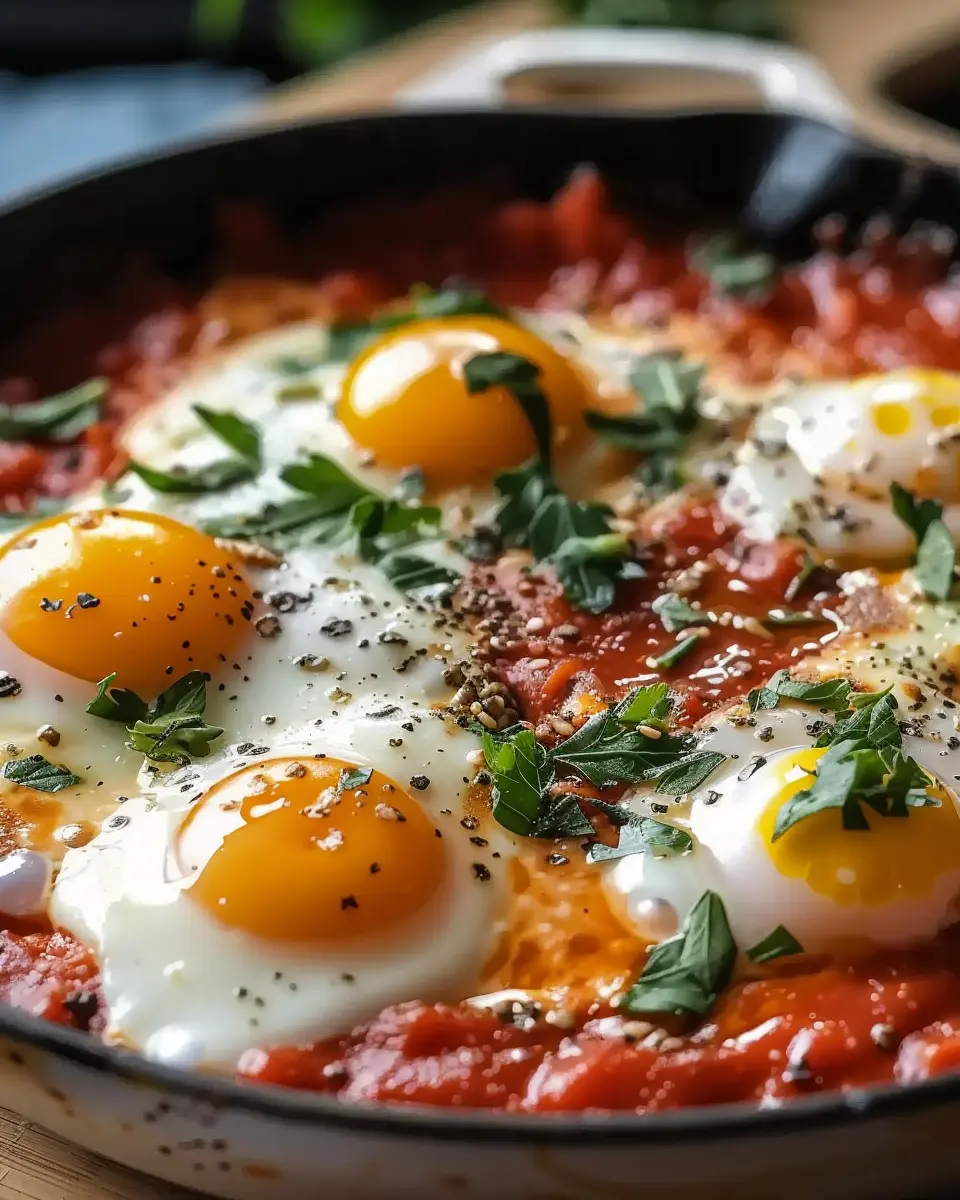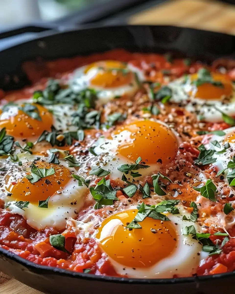 Now comes the best part! Using a spatula, carefully transfer the eggs along with the rich tomato sauce onto serving plates. Finish them off with a sprinkle of fresh herbs, whether it’s fragrant basil or bright parsley. Add a pinch of salt or more red pepper flakes if you like an extra kick!