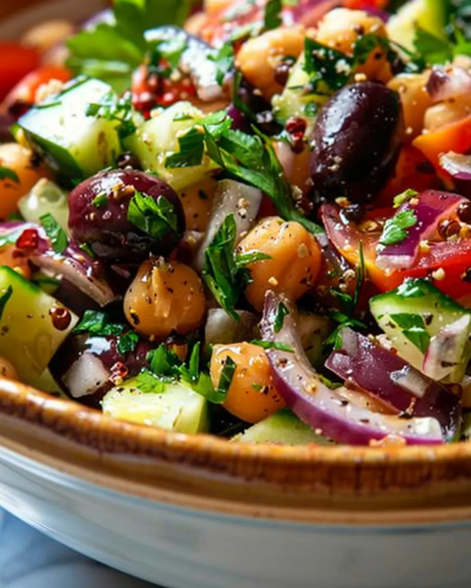 - Dressing ingredients: olive oil, lemon juice, garlic, and seasoning (salt, pepper, chili flakes)