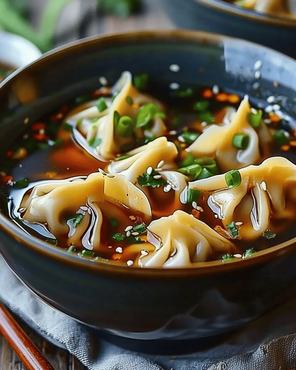 A comforting and flavorful soup that features delicious potstickers, perfect for any occasion.