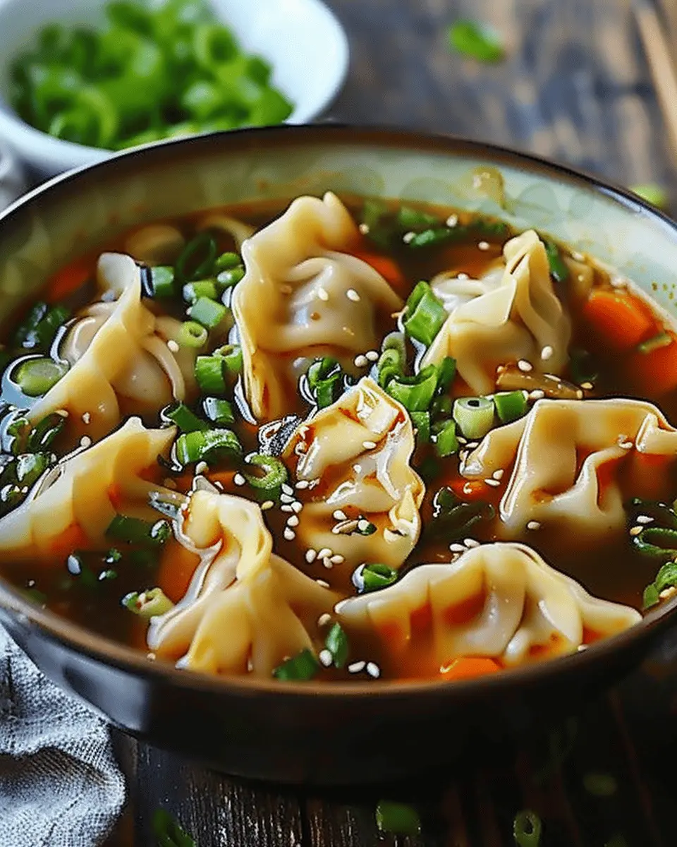 As the last step in preparing your easy Asian dumpling potsticker soup, consider garnishing with fresh herbs like cilantro or green onions. A sprinkle of sesame seeds also adds a delightful crunch.