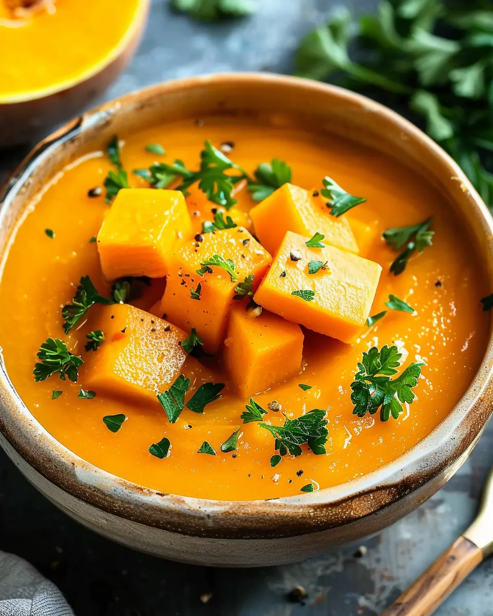 And voilà! Your easy butternut squash soup is now ready to serve. Pair it with crusty bread or a green salad for a complete meal. Enjoy every spoonful of your homemade creation—your kitchen will smell divine, and your taste buds will thank you!