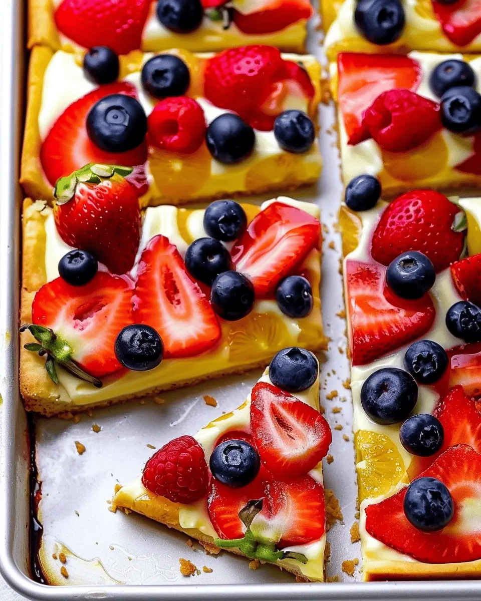 In total, you’re looking at about 35 minutes from start to finish. With this simple fruit pizza, you won’t be in the kitchen long—leaving more time for enjoying your delicious creation! For more tips on quick desserts, check out resources from Food Network or BBC Good Food.