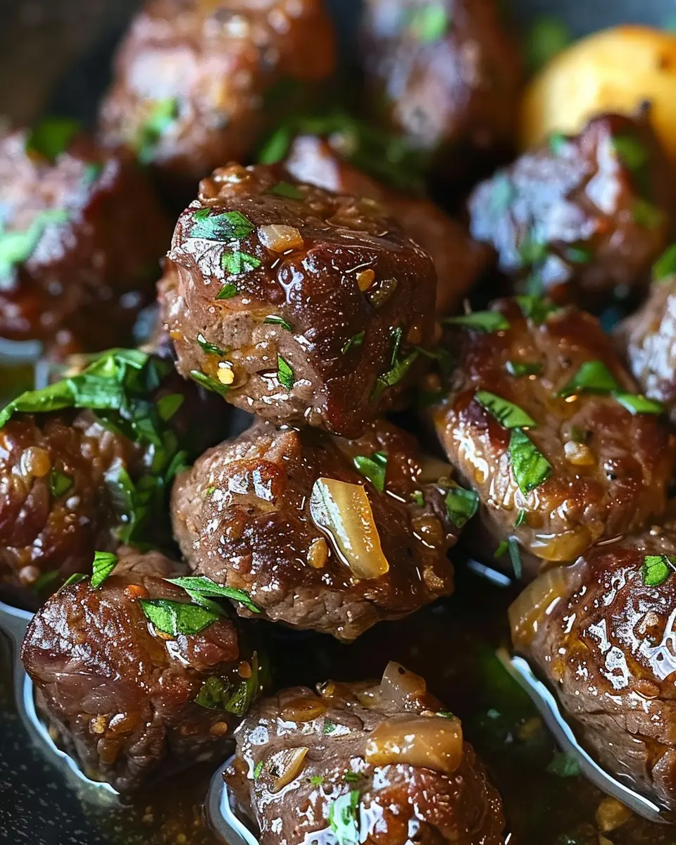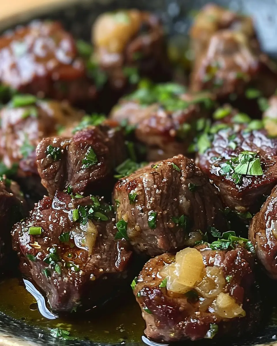 PrintGarlic Butter Beef Bites: The Juiciest Homemade Delight
