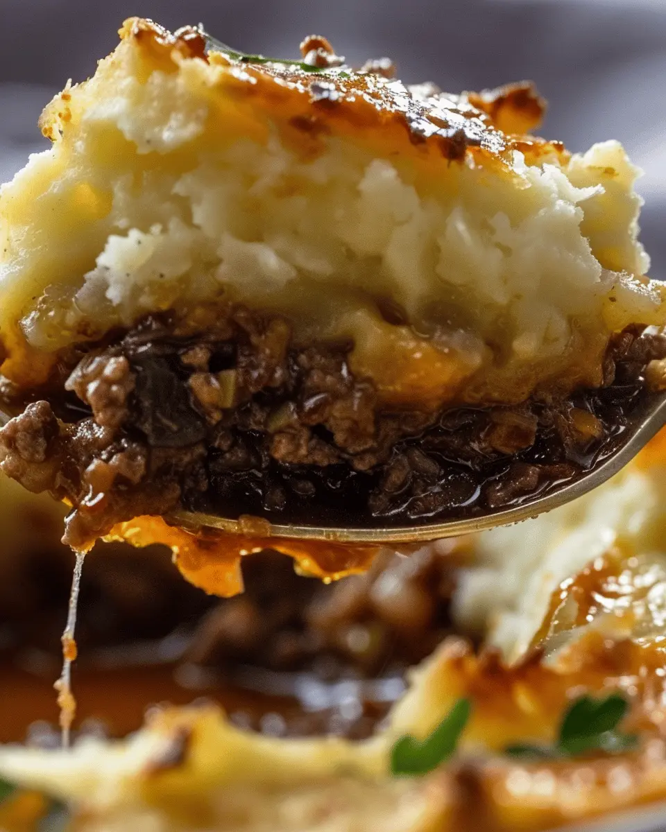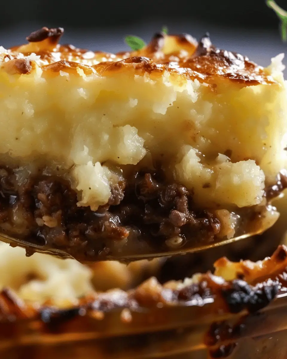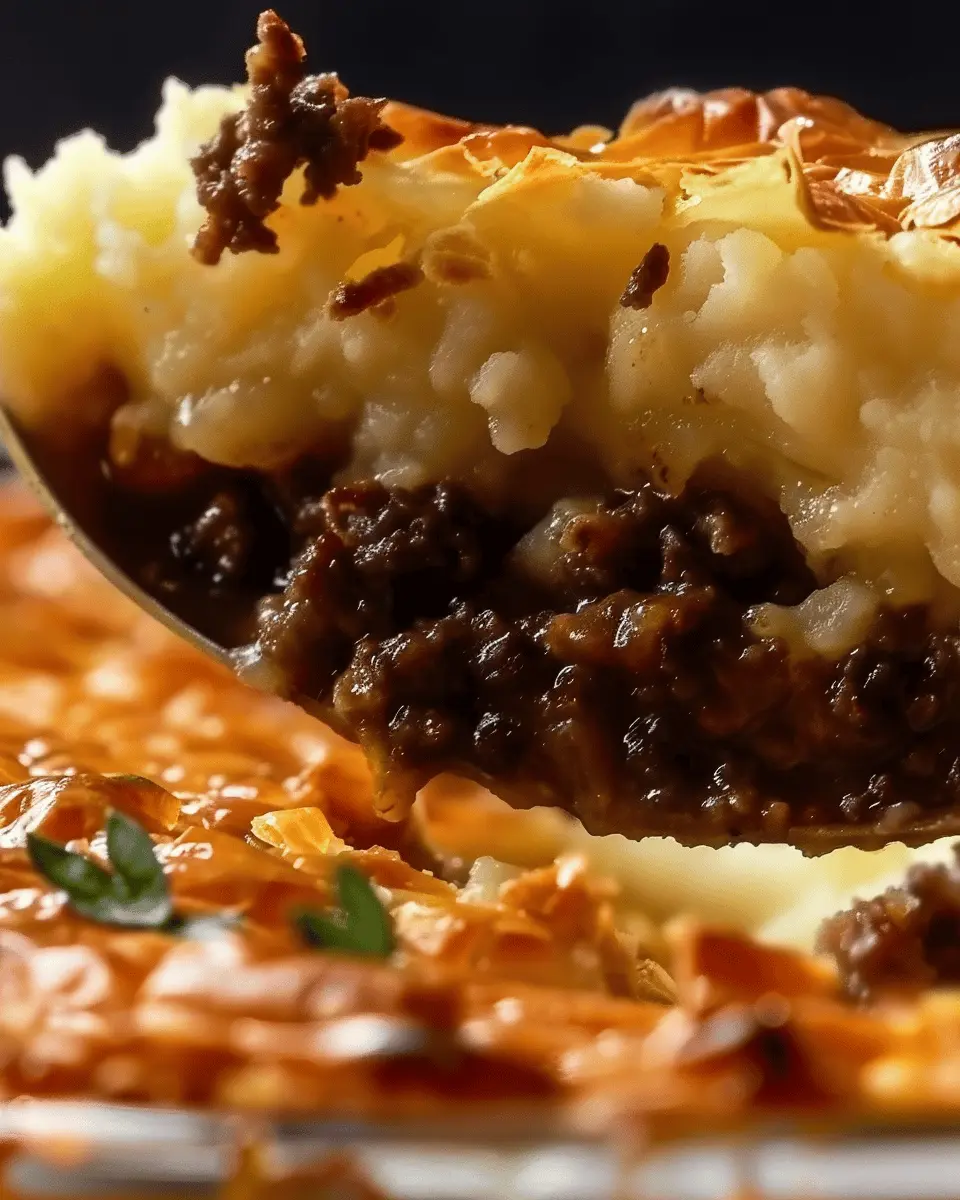With both components ready to go, it’s time to assemble your pie! Preheat your oven to 400°F (200°C). In a baking dish, first, spread the hearty meat filling evenly along the bottom. Then, gently dollop the mashed potatoes on top, spreading it out with a fork or spatula. For that extra touch, create some peaks and valleys in the potatoes to help them crisp up during baking.