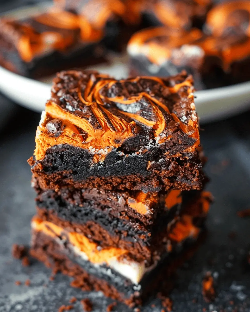 To create an eye-catching centerpiece, stack the brownies in a tiered cake stand, and drizzle a bit of orange icing on top for that extra festive flair. For a fun twist, serve them alongside tiny jars of homemade pumpkin spice whipped cream for dipping.