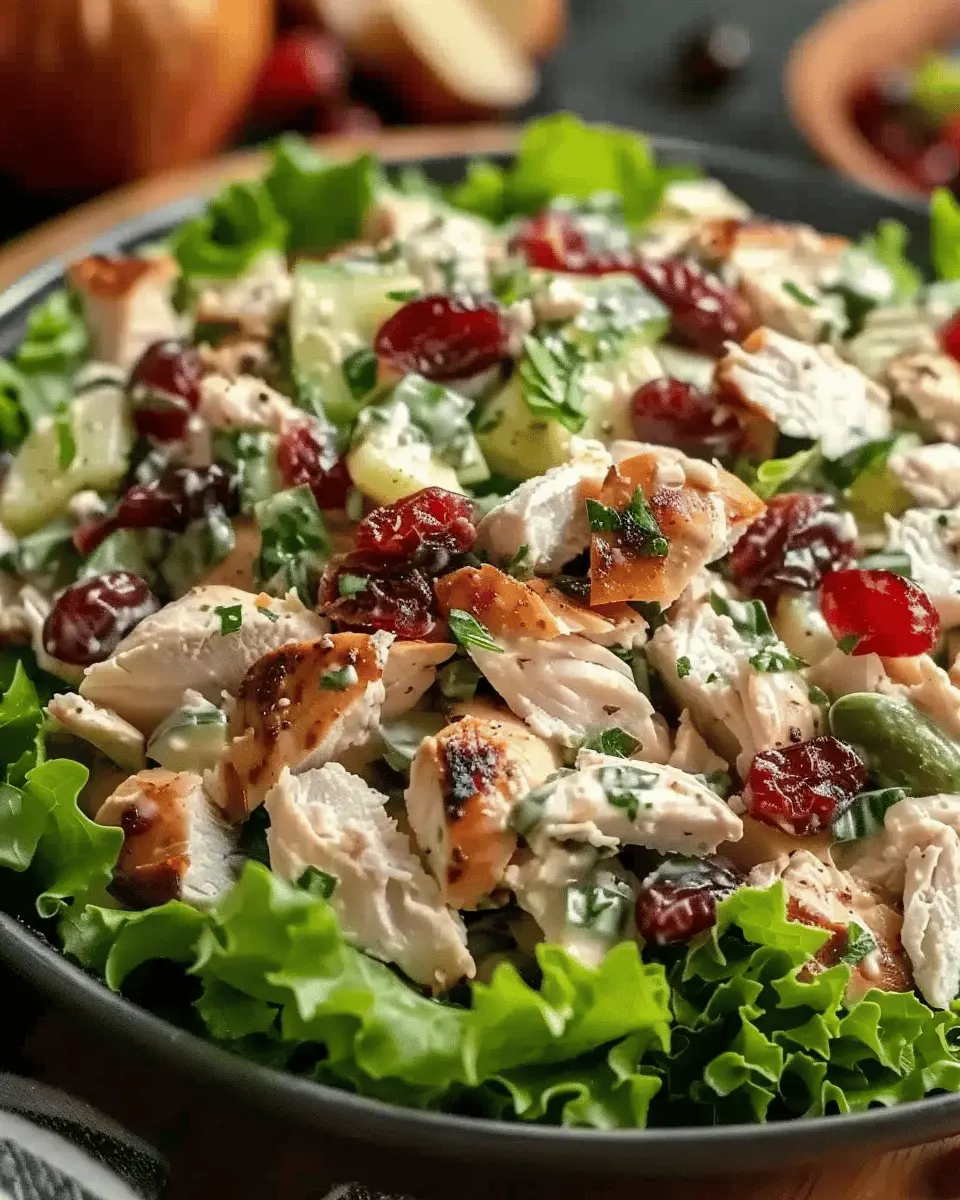 A refreshing and nutritious chicken salad packed with cranberries and seasonal ingredients.