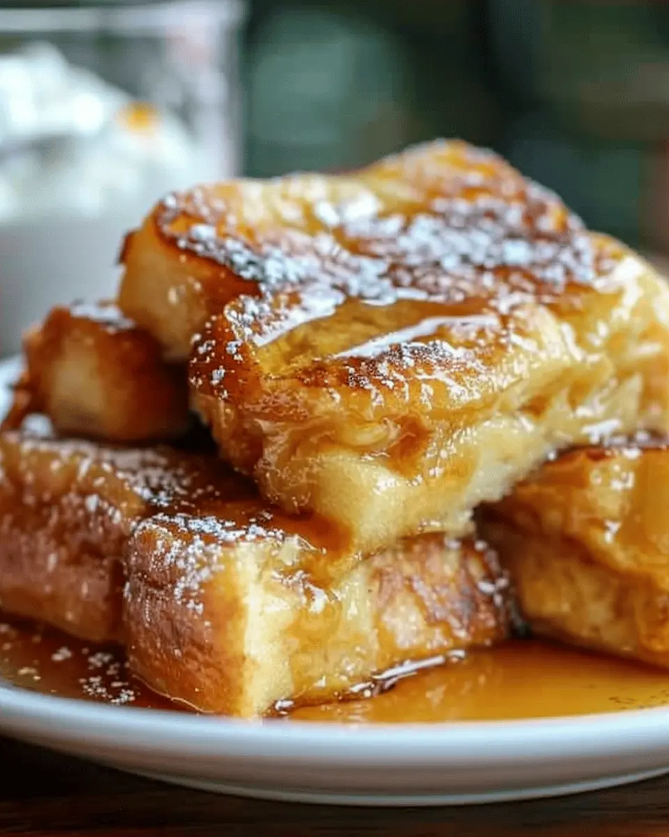 Delight in the sweet, fluffy goodness of Hawaiian Roll French Toast, the perfect start to any day.
