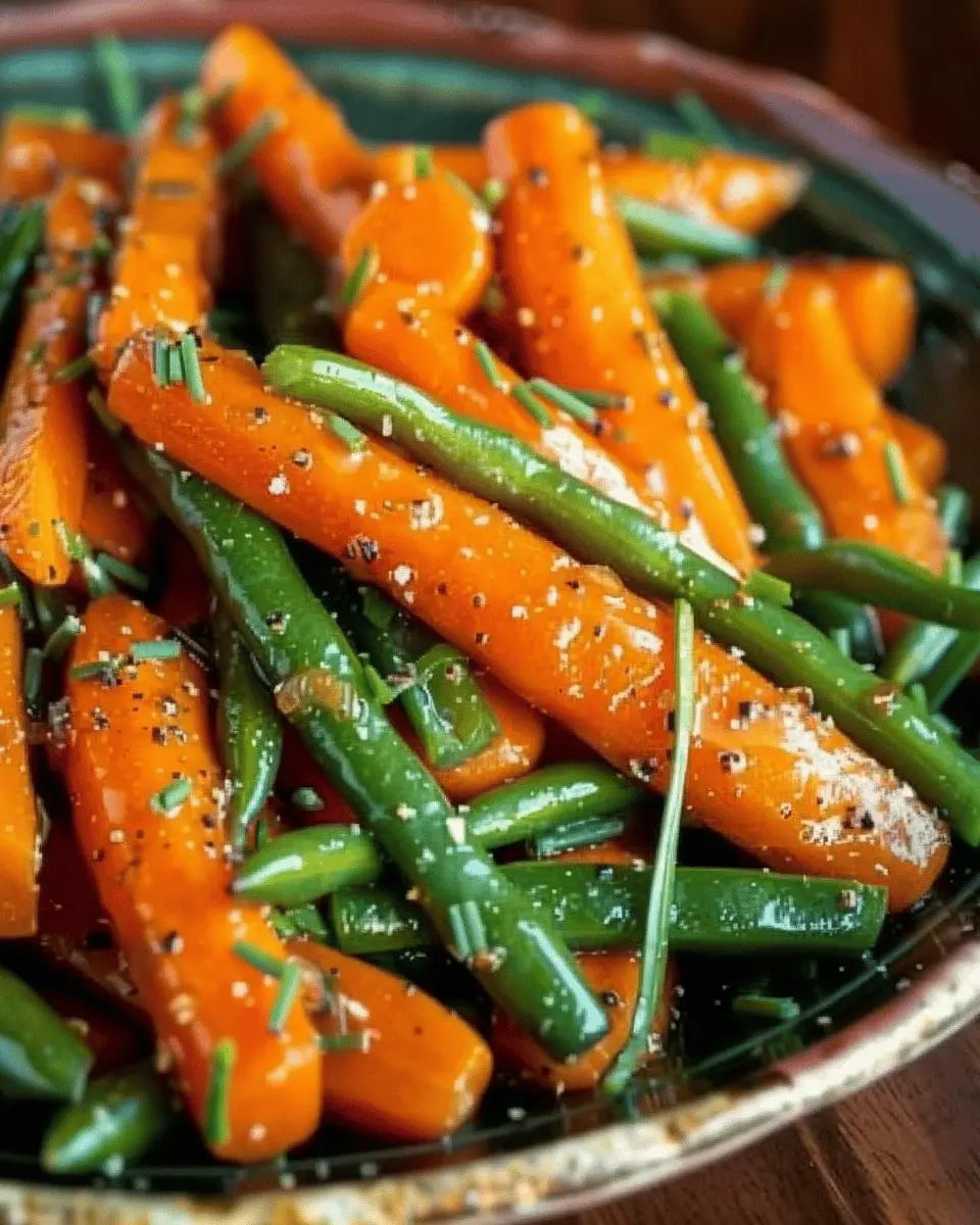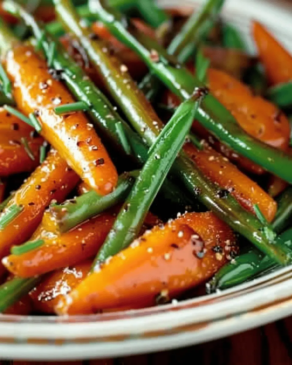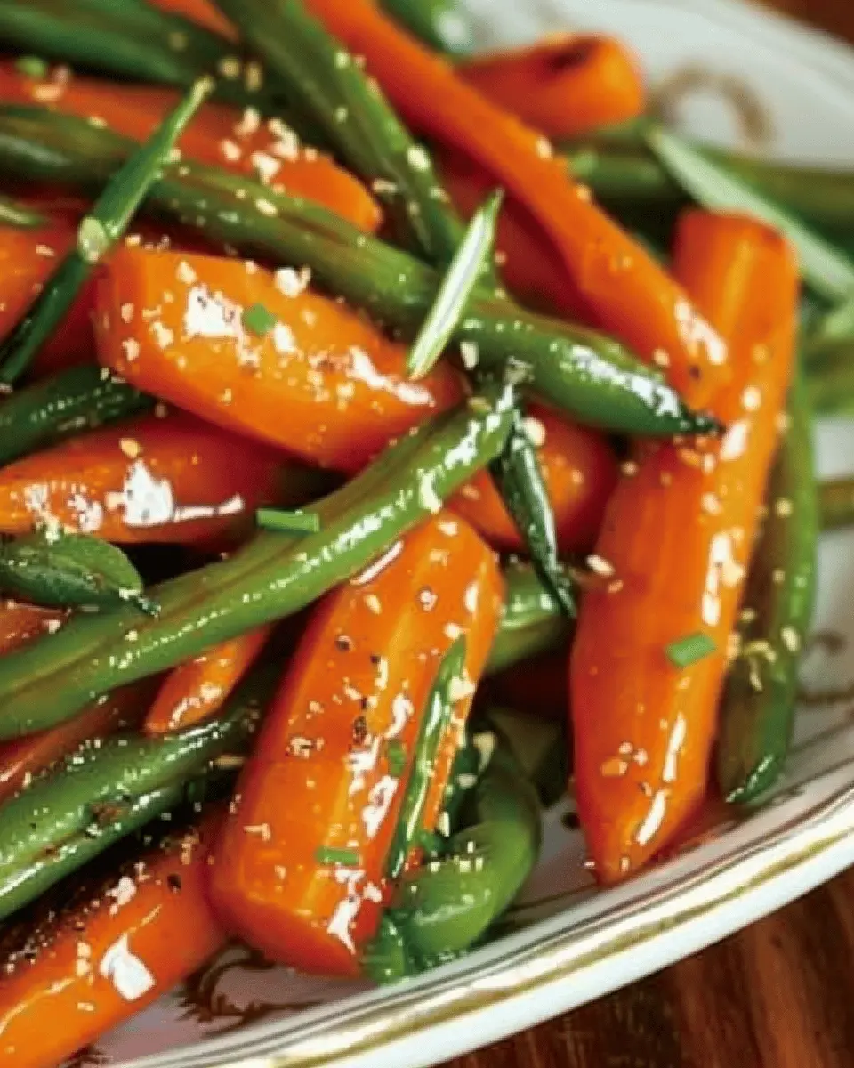 Delight in the simple yet flavorful combination of honey glazed carrots and green beans, a dish that complements any meal with its vibrant colors and sweet taste.