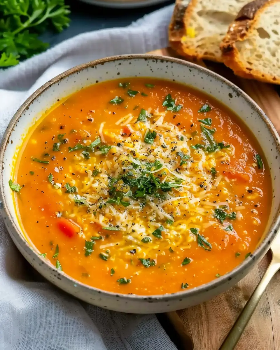 As a final touch, ladle the soup into bowls and garnish with freshly chopped parsley and a sprinkle of Parmesan cheese. Not only does this add a pop of color, but the fresh herbs will also enhance the flavors, bringing everything together beautifully.