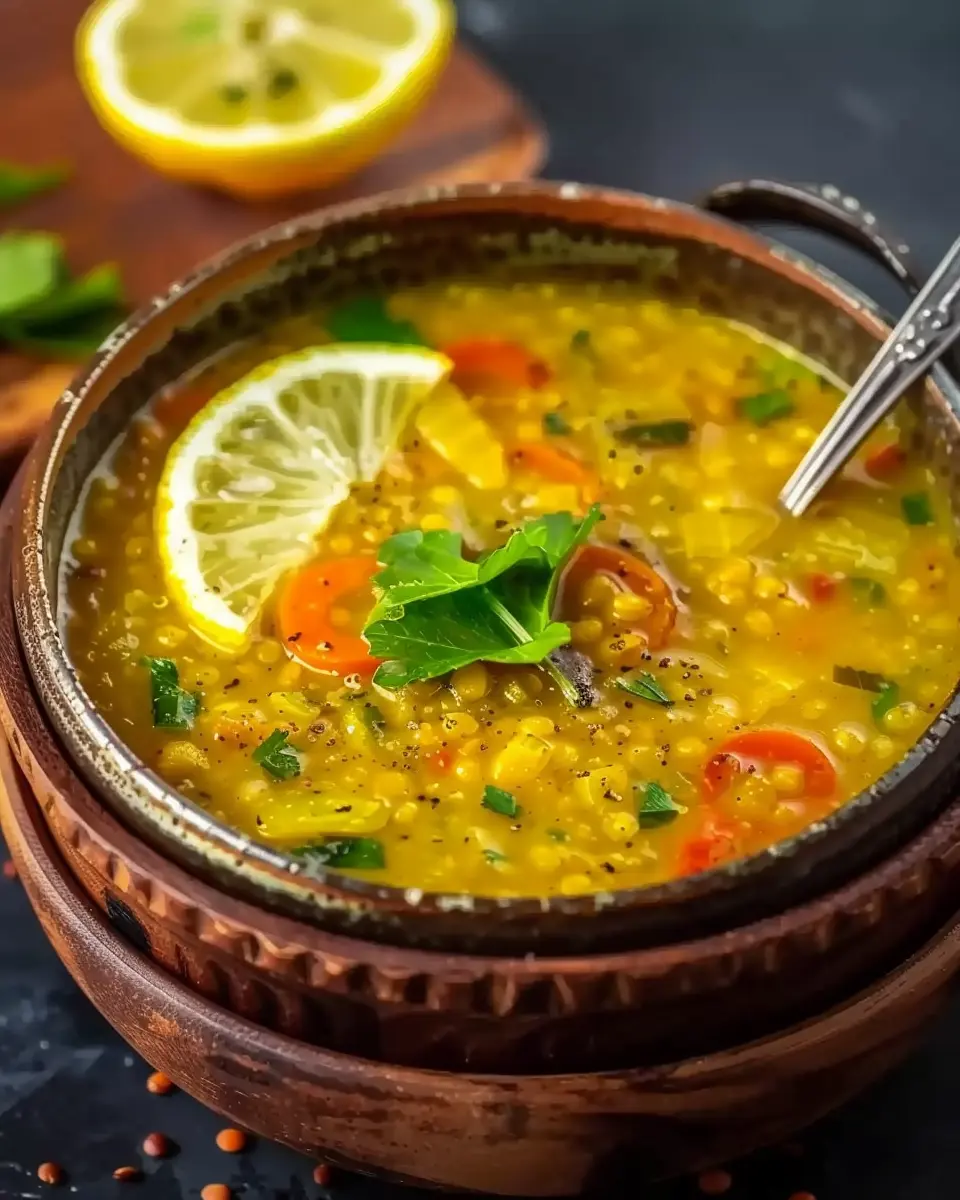 A warm and comforting Lemon Lentil Soup perfect for any occasion.