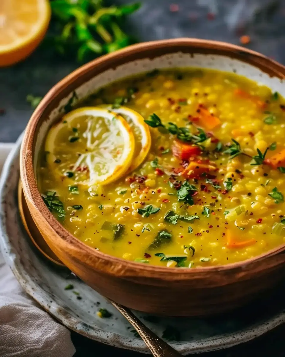A delicious and heartwarming lemon lentil soup that is perfect for cozy days.