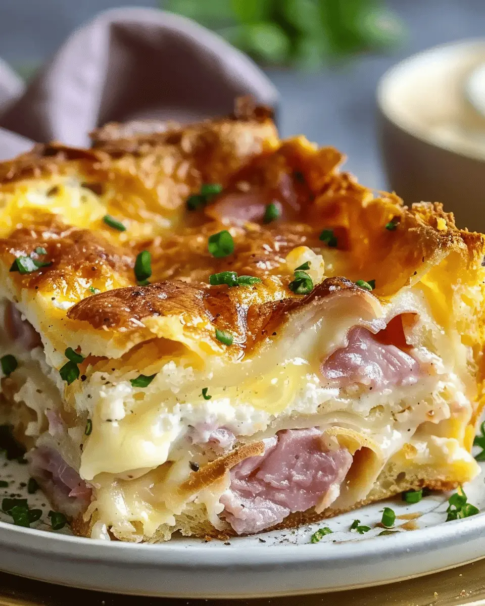 A delicious twist on a classic breakfast dish, this Monte Cristo Breakfast Casserole combines turkey bacon and chicken ham for a delightful start to your day.