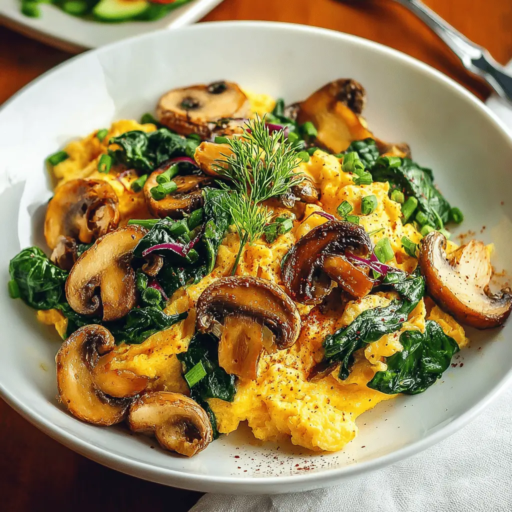 If you’re looking for a quick, nutritious breakfast that doesn’t compromise on flavor, Mushroom-Spinach Scrambled Eggs are the perfect choice. This hearty dish combines the earthy flavors of mushrooms and the vibrant freshness of spinach, delivering a delicious start to your day. Plus, it’s incredibly easy to whip up, taking just minutes to prepare. With the added protein from eggs and the goodness of veggies, you’ll feel energized and ready to tackle whatever your day brings.