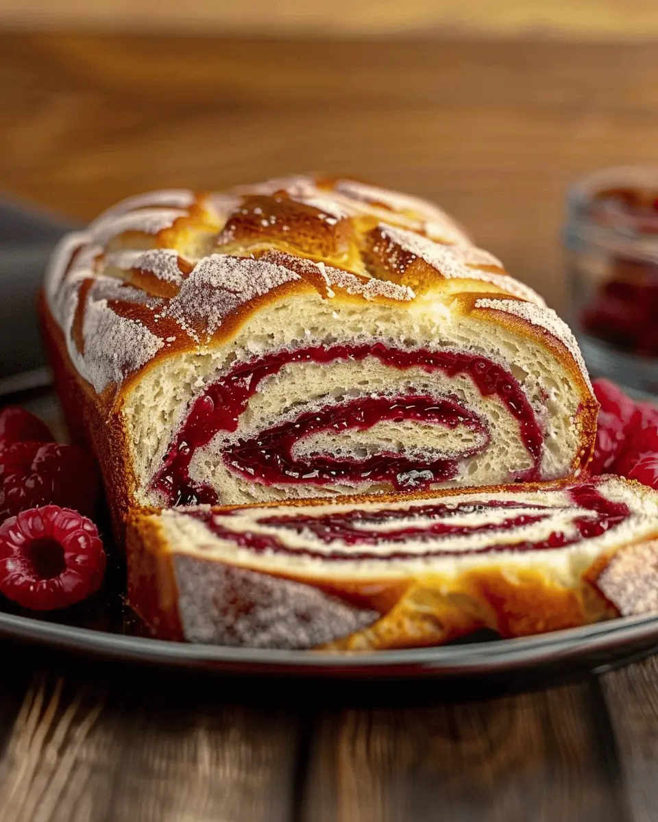 In closing, the Raspberry Swirl Brioche Loaf is not just a delightful way to indulge your sweet tooth but also an impressive centerpiece for any gathering. It’s incredibly versatile; serve it warm with a pat of butter for breakfast, or toast it lightly for a dreamy afternoon snack.