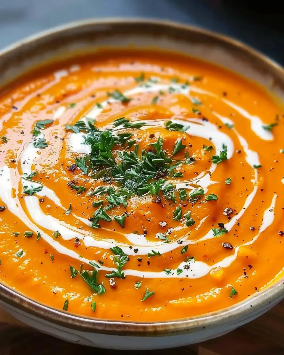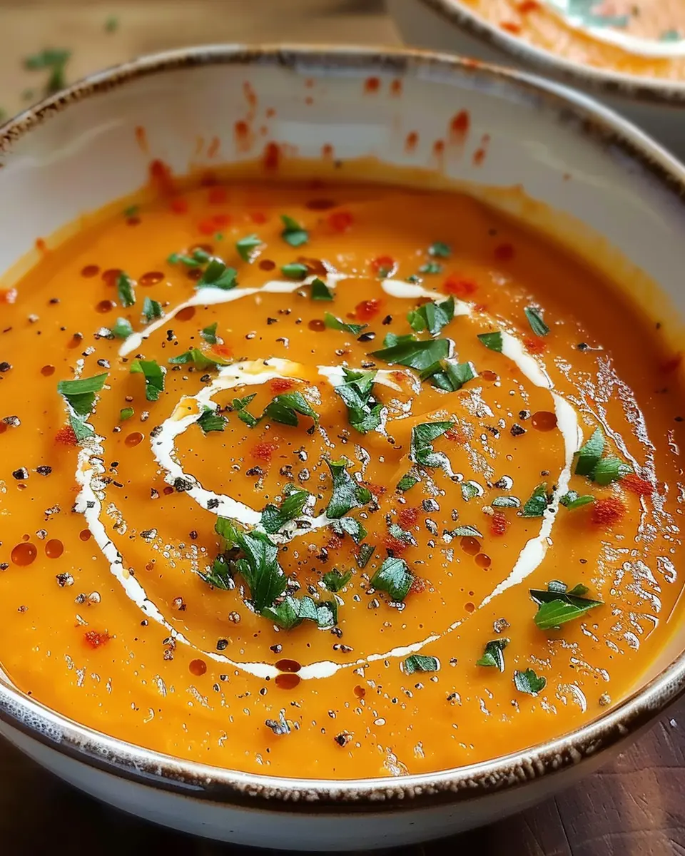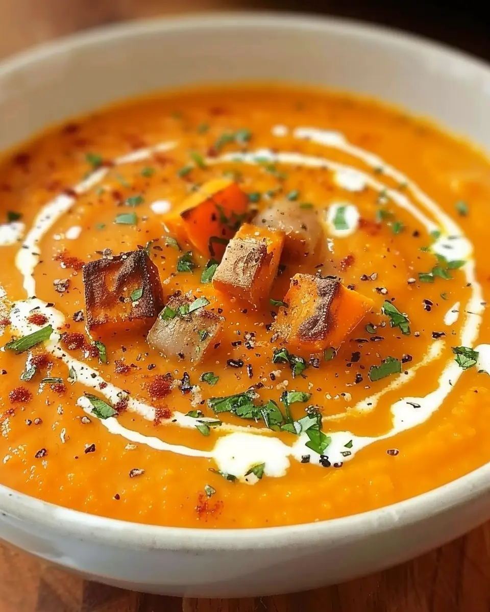 A warm, flavorful soup made with roasted sweet potatoes, perfect for a cozy meal.