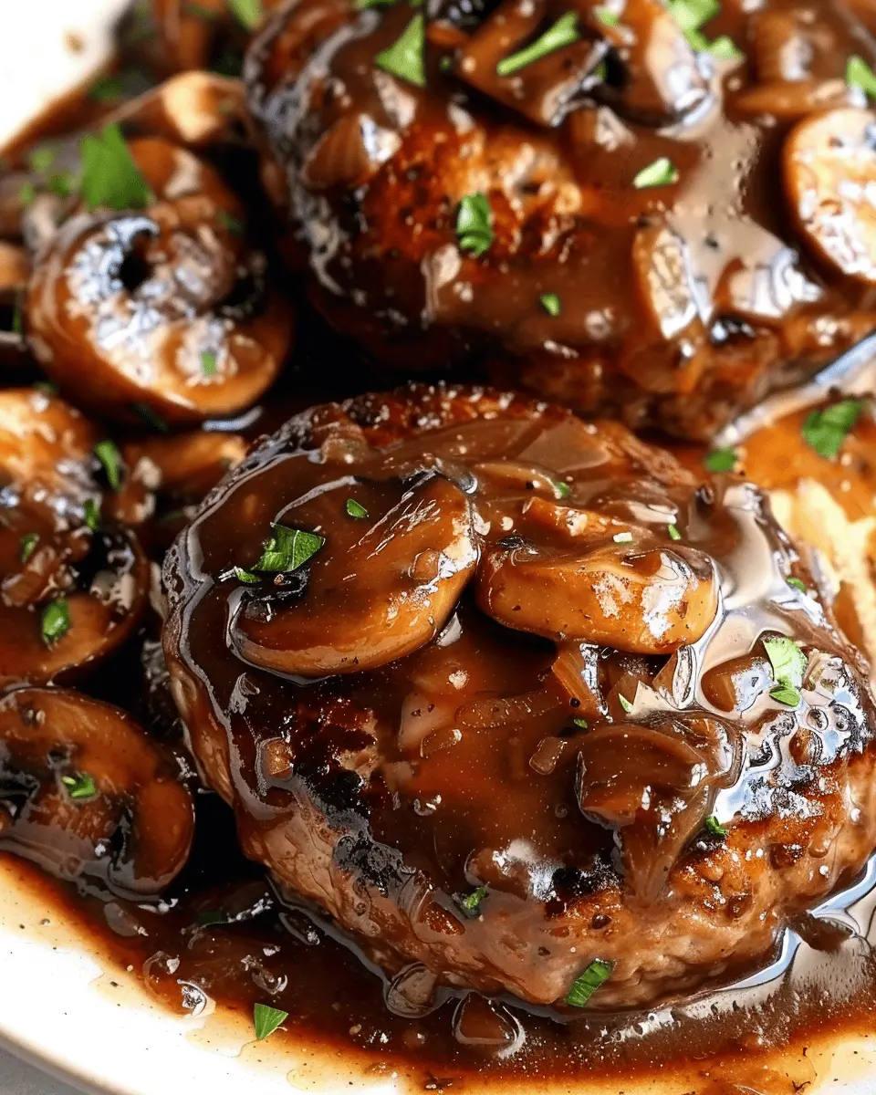 Presentation is key when serving Salisbury steak! Try placing the steak on a bed of sautéed mushrooms and onions for a rustic look, and drizzle the gravy artfully on top. Garnish with fresh herbs like parsley or thyme to add a touch of sophistication. You could even serve it on a platter for a family-style dinner that invites sharing. Pair your dish with a non-alcoholic sparkling beverage or refreshing iced tea to round out the experience—who says dinner can’t be festive?