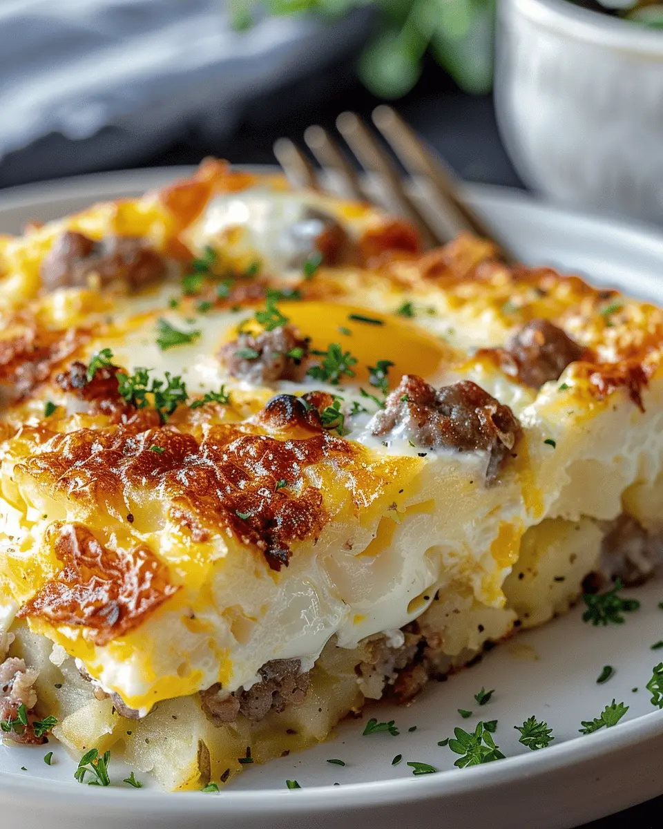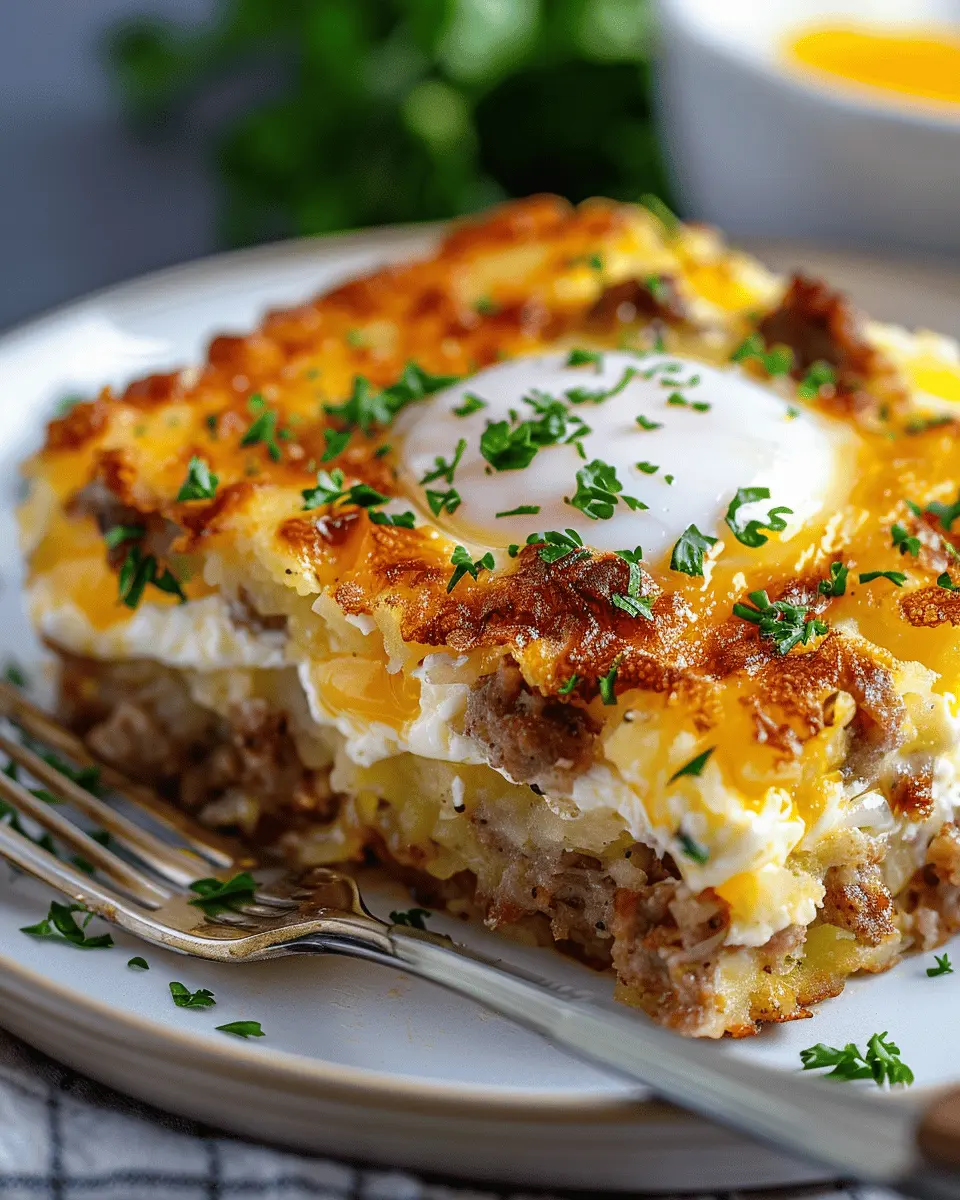 What really sets this casserole apart is its unbeatable flavor combination. You get layers of crispy hashbrowns, tantalizing sausage (let’s not forget turkey bacon and chicken ham!), fluffy scrambled eggs, and creamy cheese that meld into sheer breakfast perfection. Each bite will leave you wanting more—this isn’t your run-of-the-mill egg-and-sausage dish!