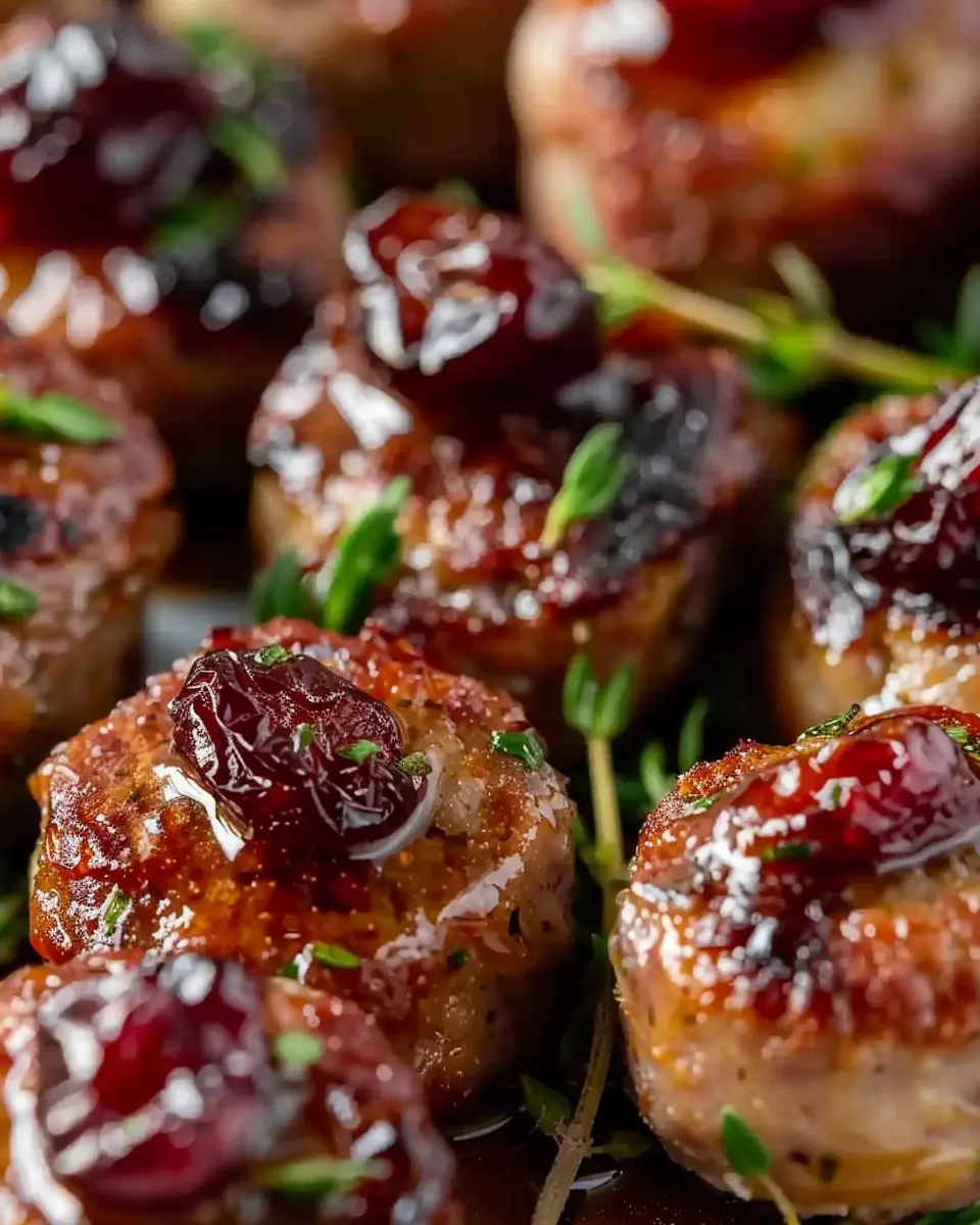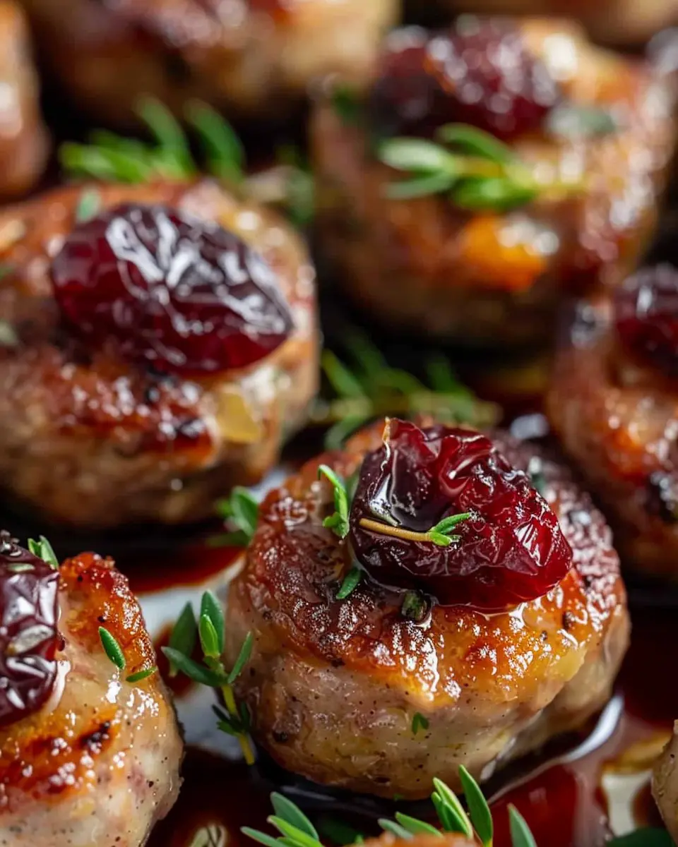 The savory sausage not only provides protein but also sets a robust foundation for all the flavors. The tart cranberries introduce just the right amount of sweetness, while cheese brings a luscious quality that binds everything together. You might even consider switching it up with Turkey Bacon or Chicken Ham for a twist that elevates these bites a notch higher.