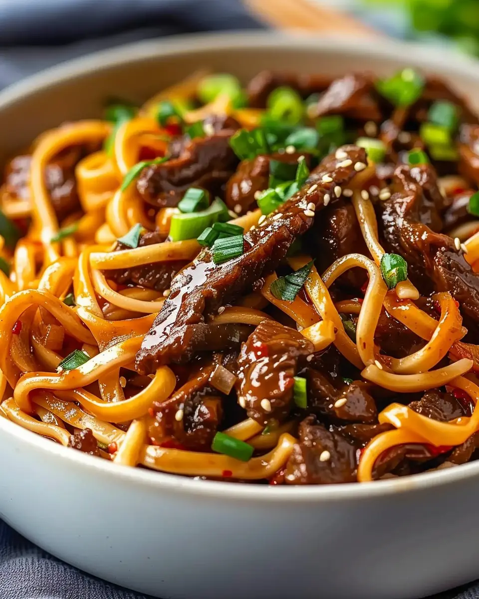 Now, it’s time for the grand finale! Using slotted spoons, dish out the beef and noodles into bowls. For that extra touch, garnish with additional green onions, sesame seeds, or even a drizzle of sriracha if you like it spicy. A side of kimchi would also elevate the experience, providing that zingy contrast to the rich beef.