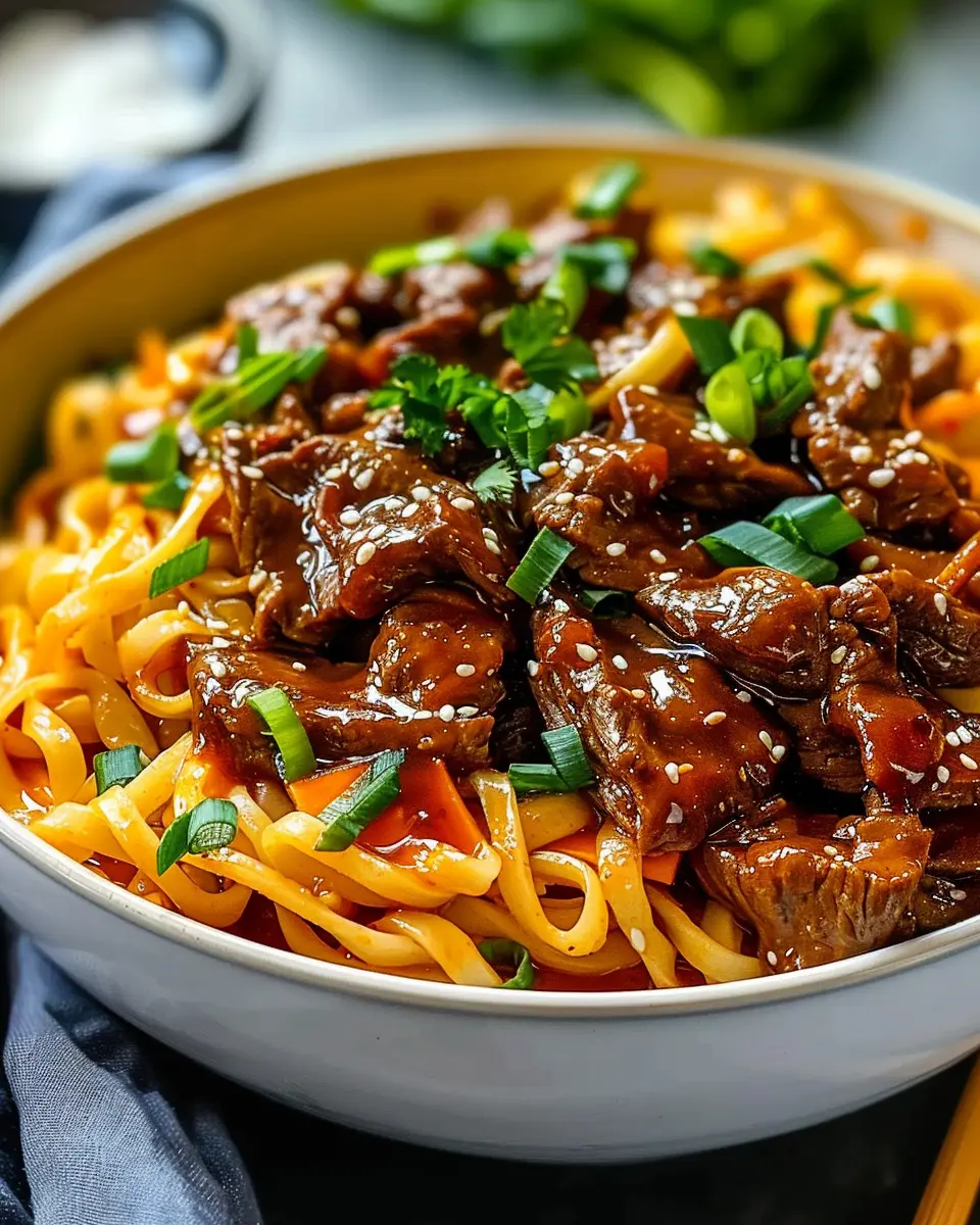 PrintSlow Cooker Korean Beef Noodles Recipe: Easy and Delicious Comfort Food