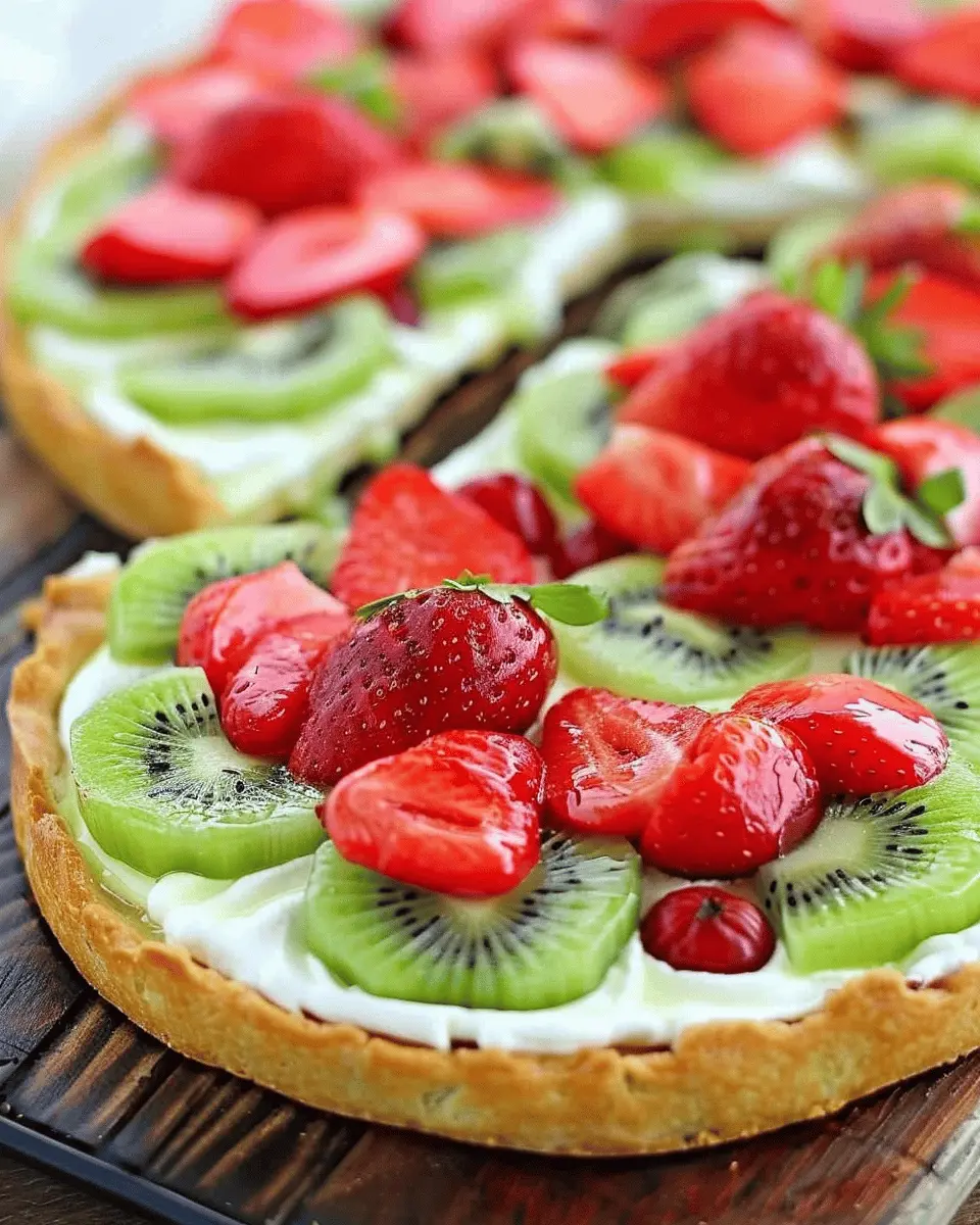 In summary, strawberry kiwi fruit pizza is a delightful, innovative twist on the classic dessert that combines vibrant flavors and textures. This recipe not only satisfies your sweet tooth but also provides a healthy dose of fruit, making it a guilt-free indulgence. It’s perfect for gatherings, offering a colorful centerpiece that will impress your friends and family.