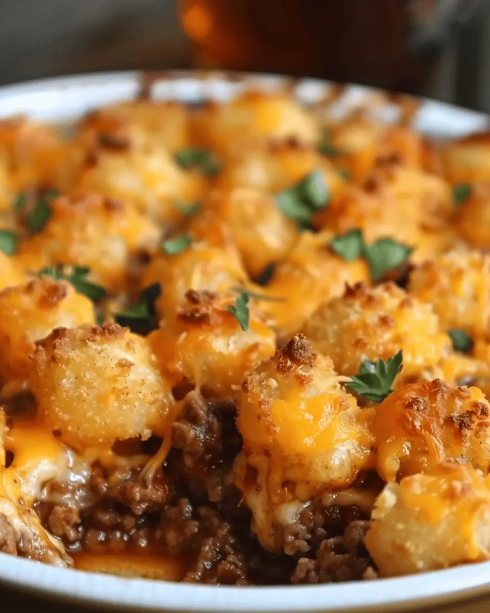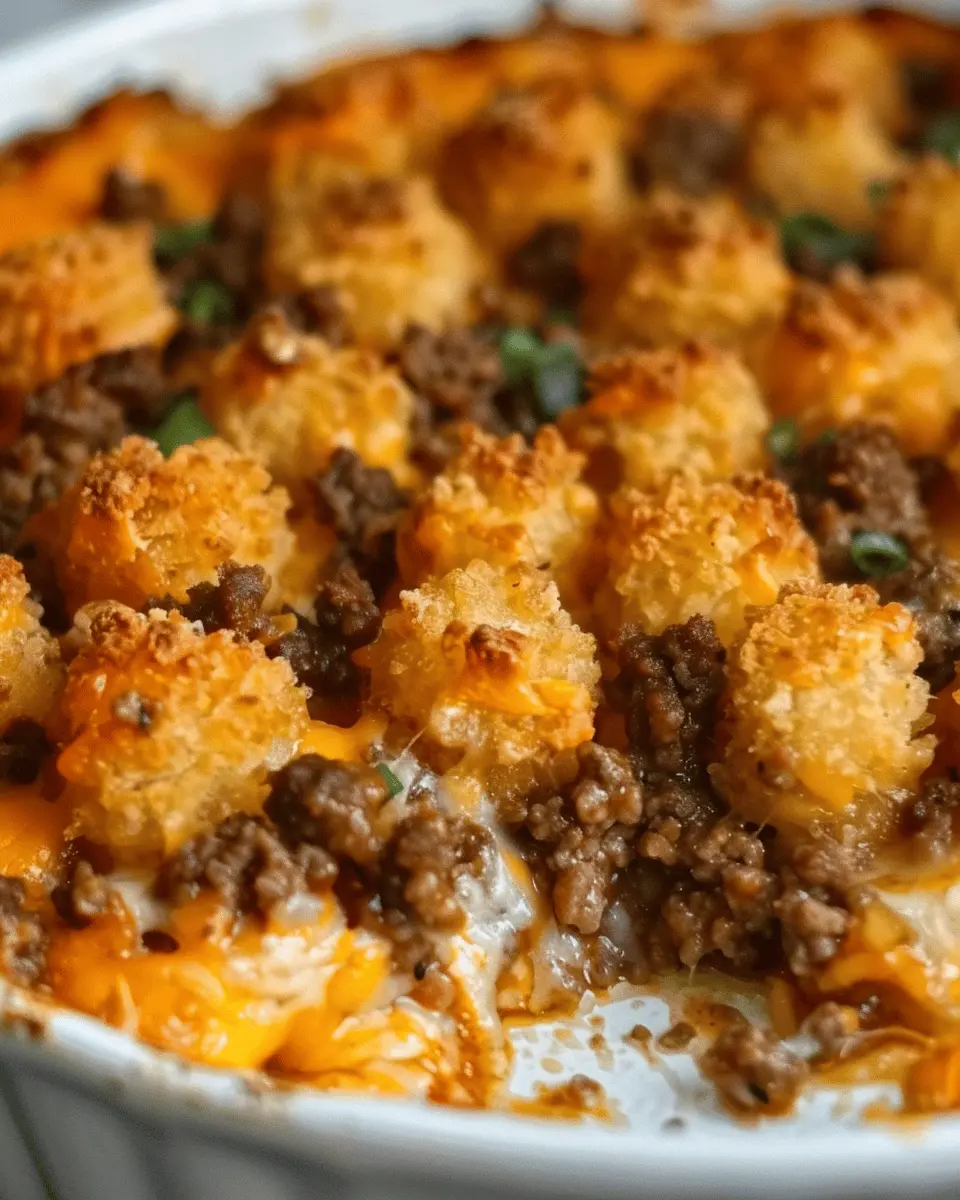 • Comforting and Satisfying: The crispy tater tots on top provide the perfect textural contrast to the savory ground beef, making every bite something to savor.