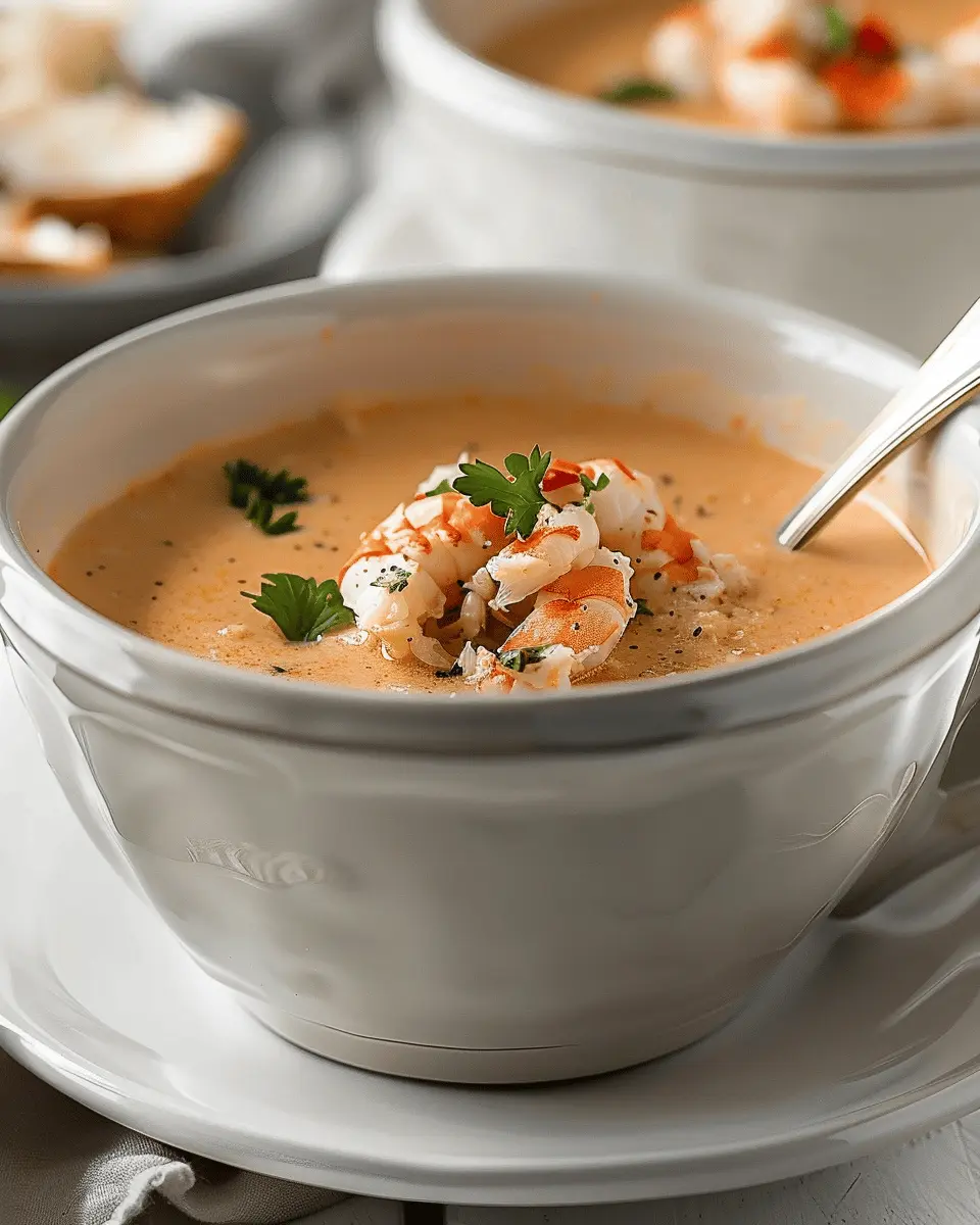 Freshly Baked Bread: A crusty sourdough or a warm baguette is perfect for soaking up every drop of this creamy bisque. Consider serving it with a hint of garlic butter for an added flavor twist.