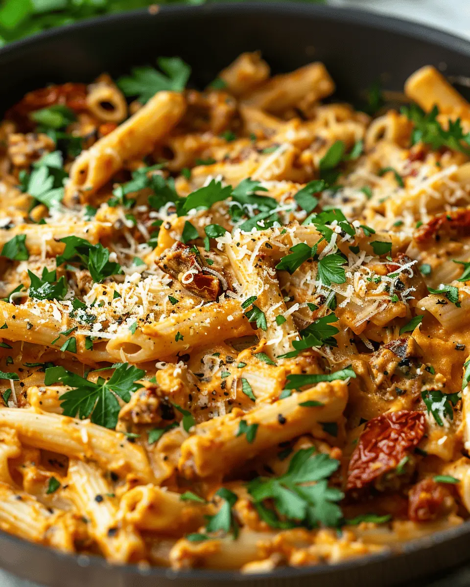 A delightful and easy recipe for vegan creamy sun dried tomato pasta that promises comfort in every bite.
