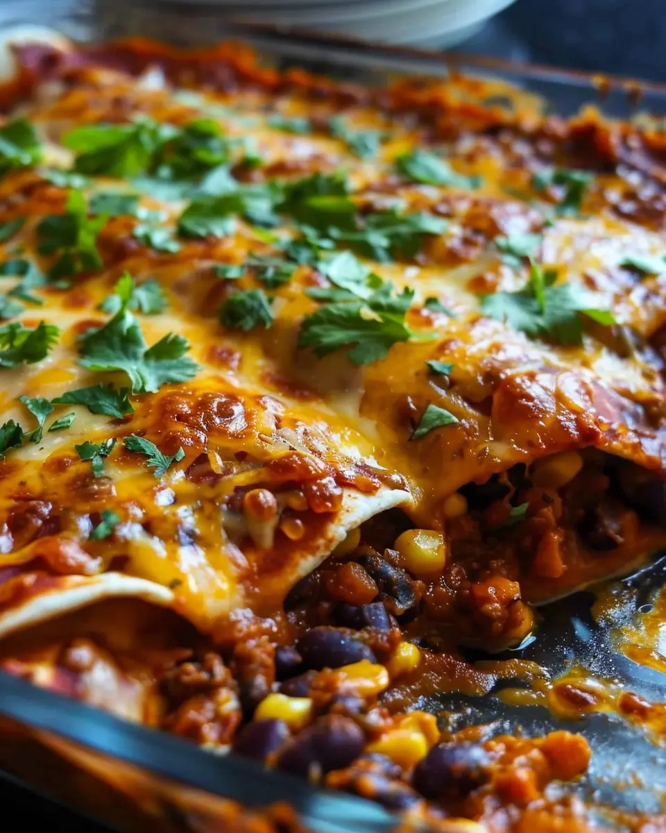 For those who can’t resist cheese, try crafting vegetarian black bean enchiladas bursting with assorted vegetables. Think bell peppers, zucchini, and even sweet corn mixed in with the black beans. Layer in creamy cheeses like Monterey Jack and sharp cheddar to create a melty, gooey texture. You might find that swapping out half the black beans for sautéed mushrooms adds a lovely depth. Top it off with fresh cilantro for a zingy finish.